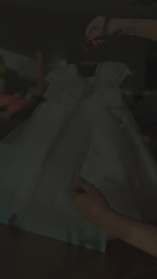 White Children's Dress with Bow and Stones