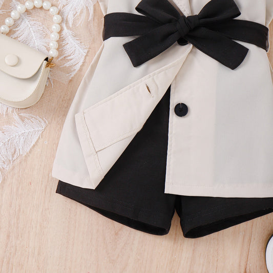 • 3Pcs Summer Outfits Blazer + Cami Tops + Belted Shorts  2-7T