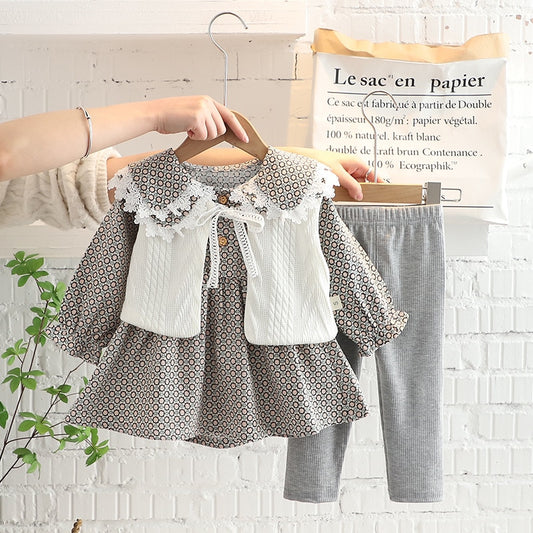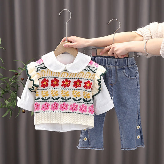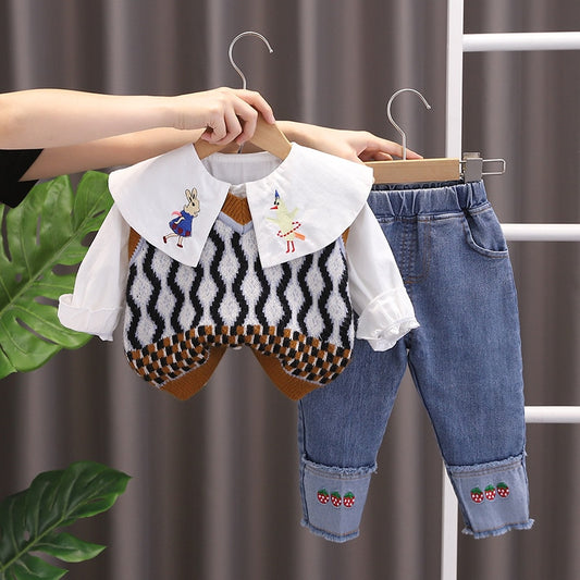 • Children's set 3 pieces vest and blouse with embroidered collar