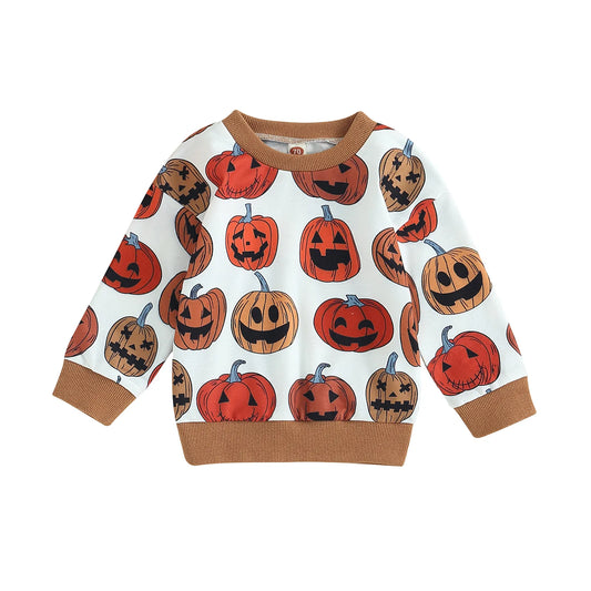 Set Halloween Pumpkin Print Long Sleeve Sweatshirt