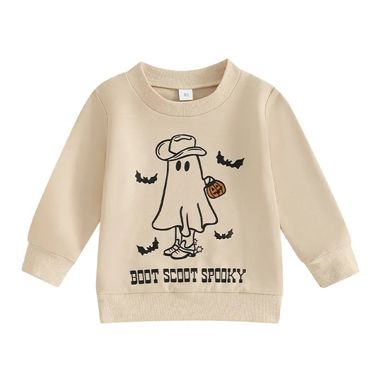 Halloween Long Sleeve Letter Leopard Pumpkin Print