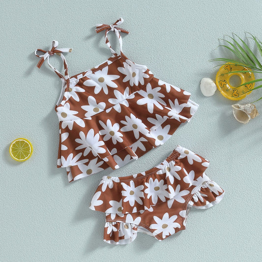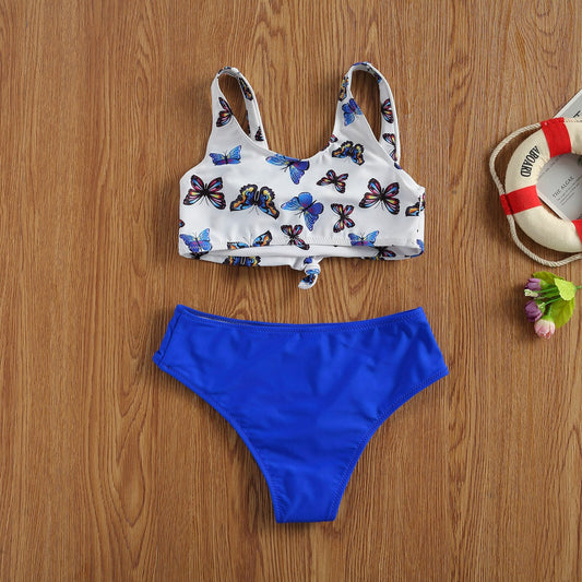 Bikini Suit, Butterfly Printed Tank Tops with Solid Color Briefs Princess Swimsuit