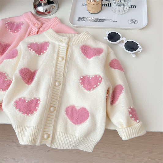 Cardigan Infantil Pérolas Coraçõeszinhos