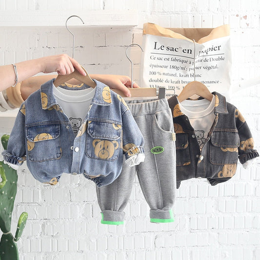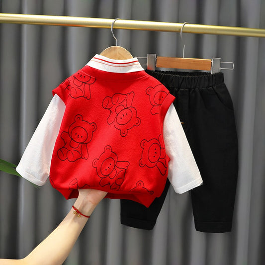 3PCS Clothes Set Cartoon Bear Knitted Vest Cotton