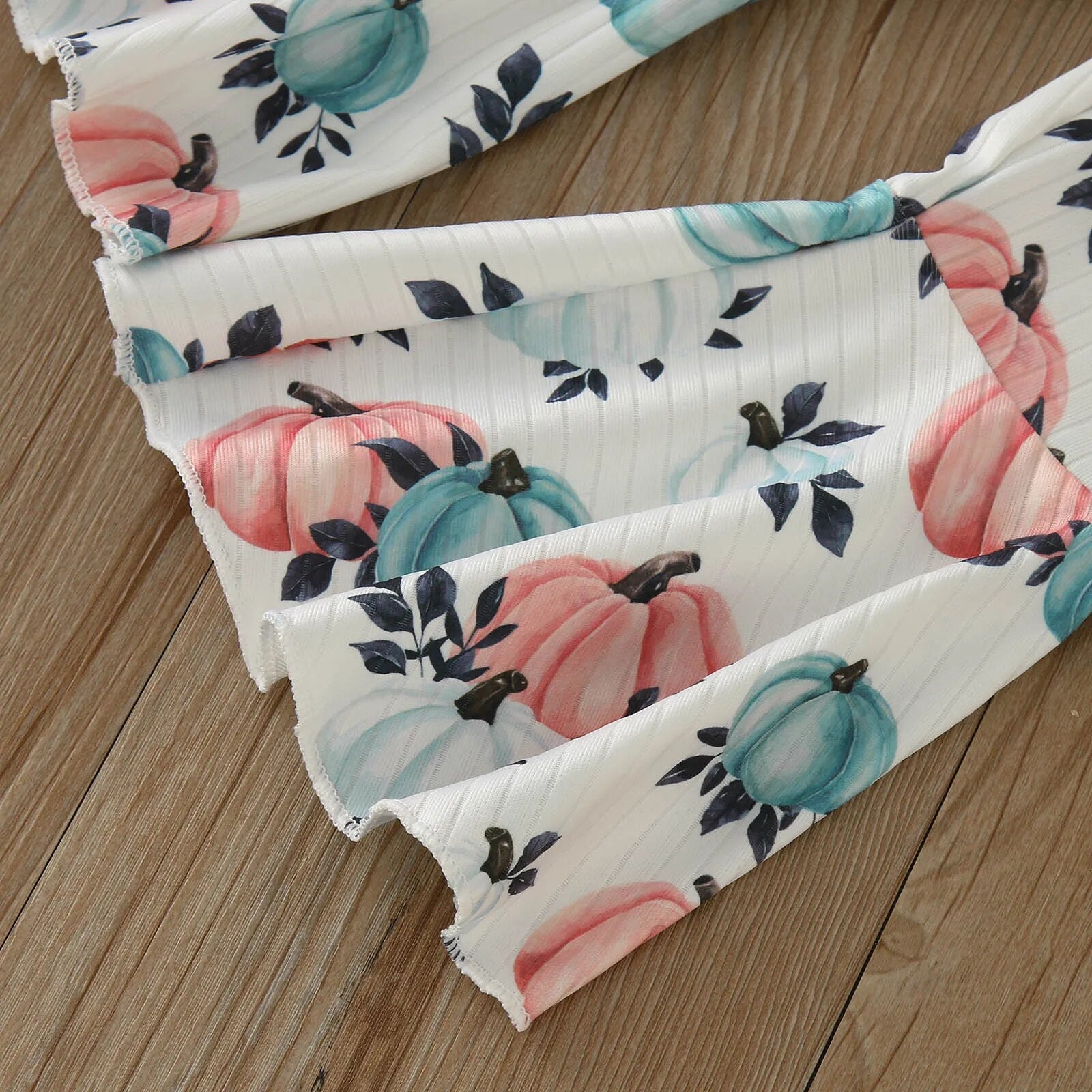 Halloween Clothes Sets Fall Winter Long Sleeve Tops Pumpkin Flare Pants