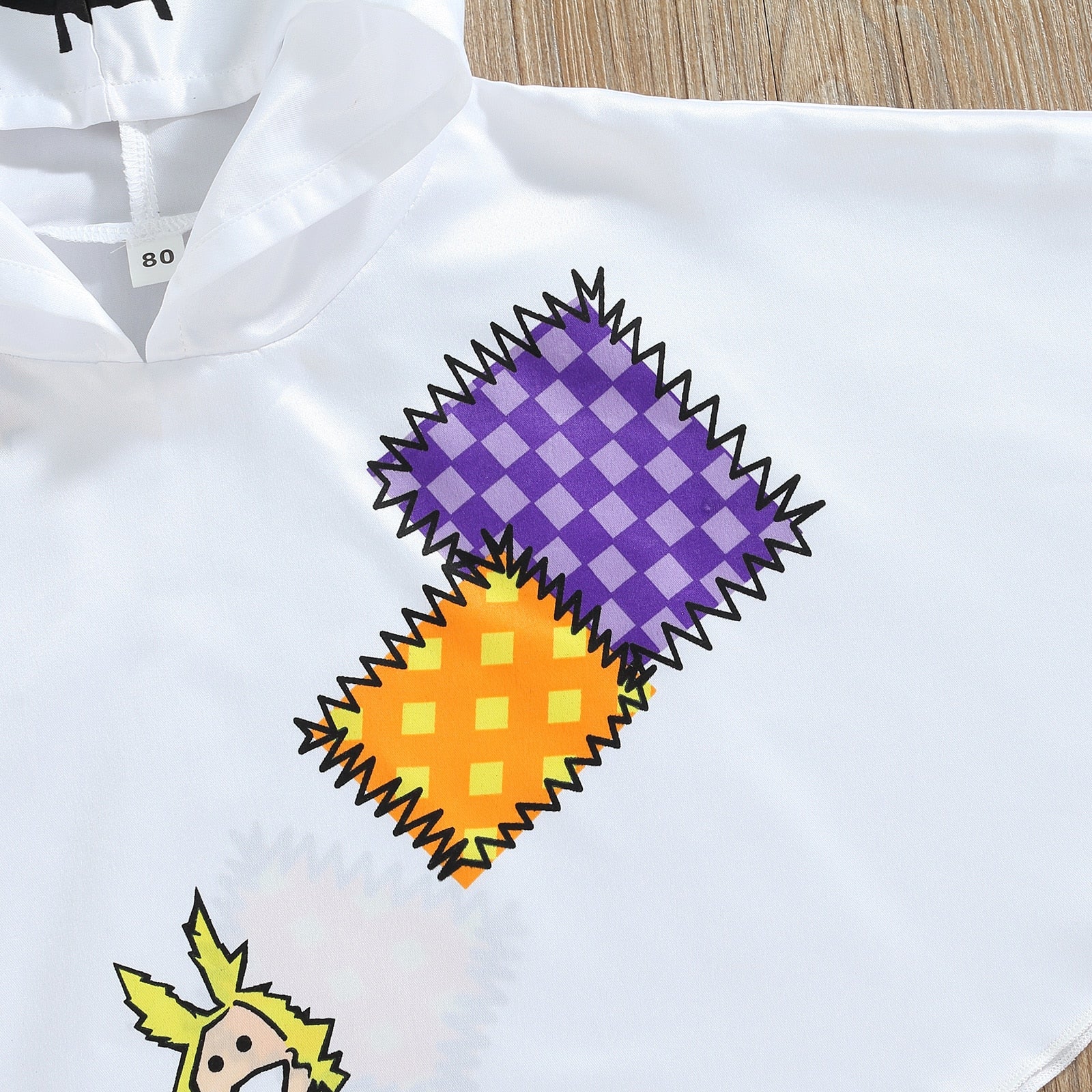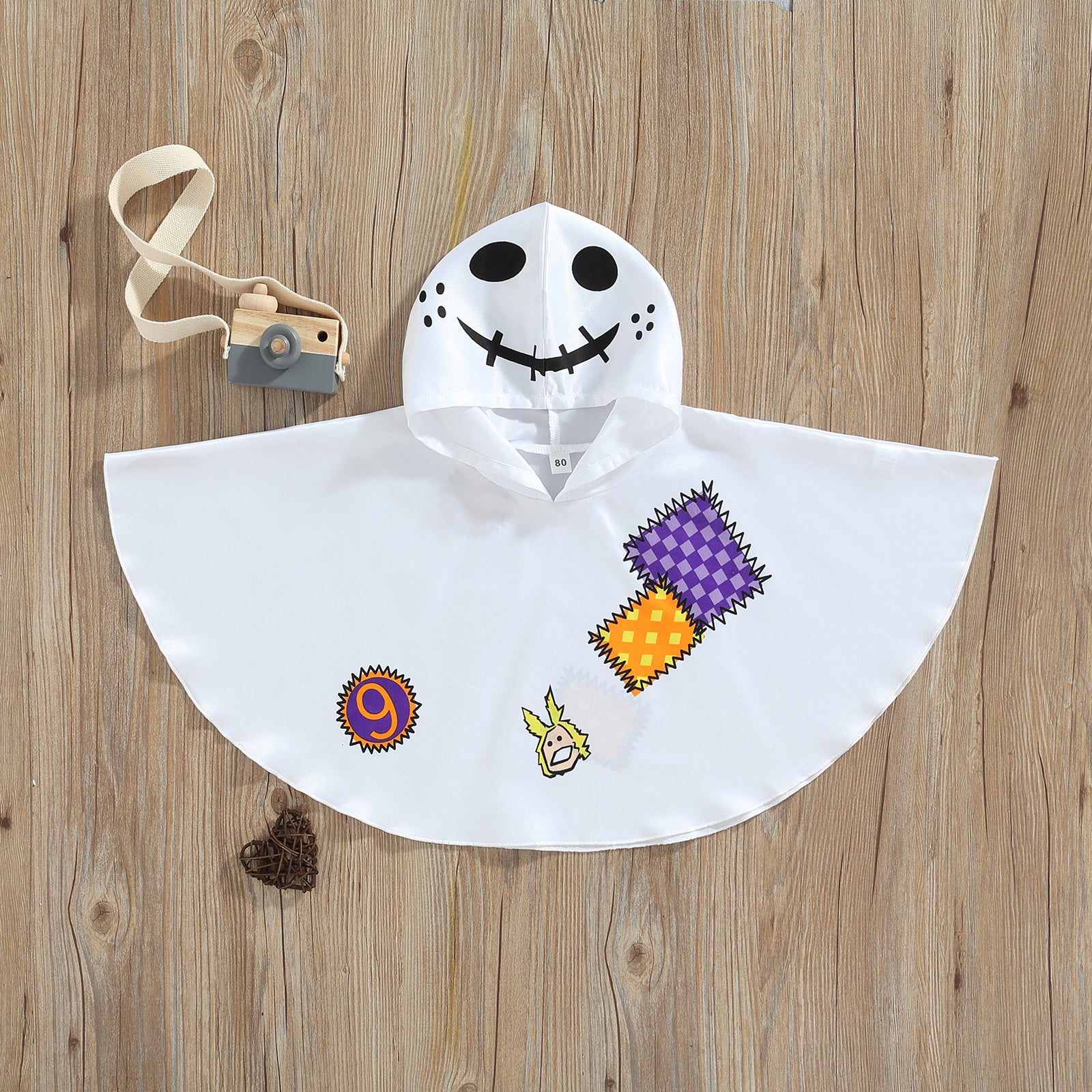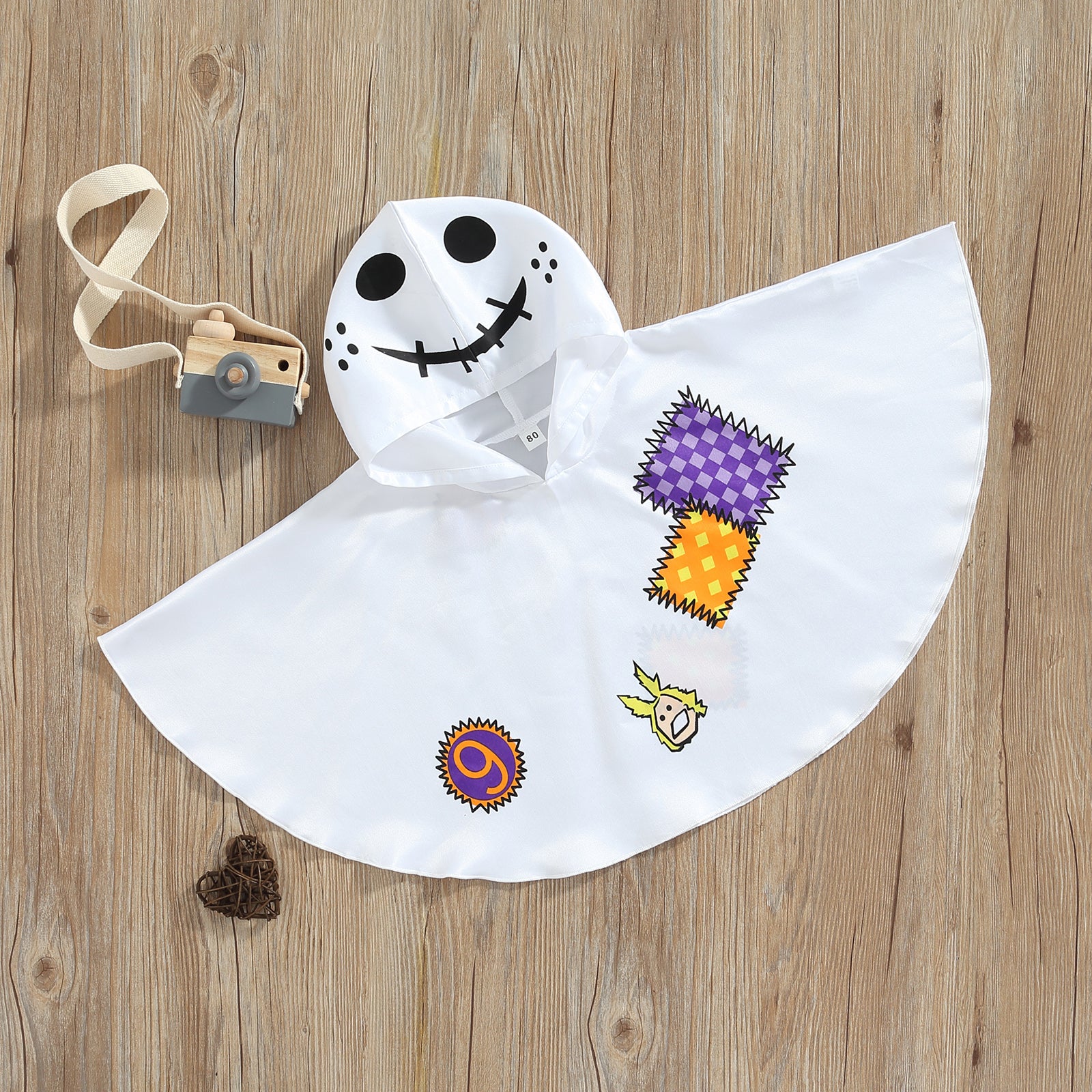 Children Halloween Clothes, Ghost Digital Cartoon Print Hooded Cape Tops Cosplay Costume for Boys Girls