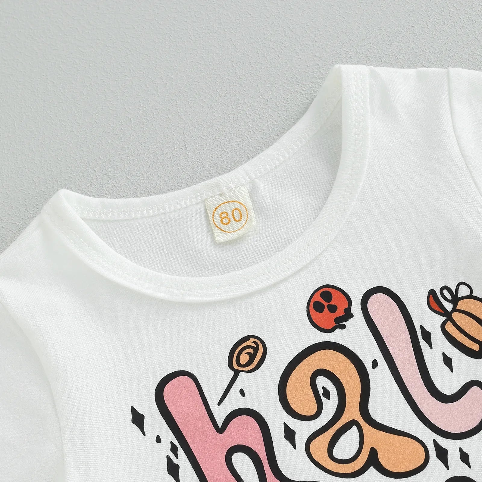 Halloween Set Letter Print Short Sleeve T-Shirt Pumpkin