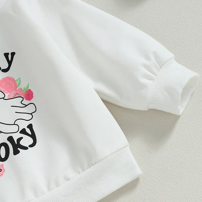 Pants Set, Sweatshirt with Ghost Flower Print Flare Pants Halloween