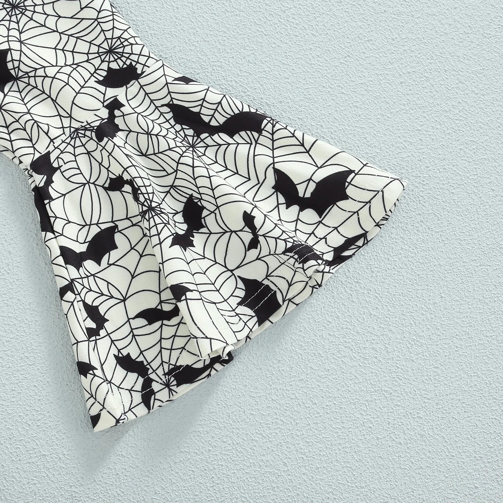 Set Print Sweatshirt Witch Hat Bat Spider Web Flare Pants