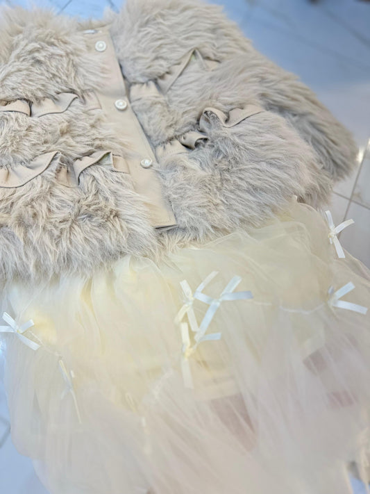 • Women's Children's Set Plush Coat + Bow Tulle Skirt