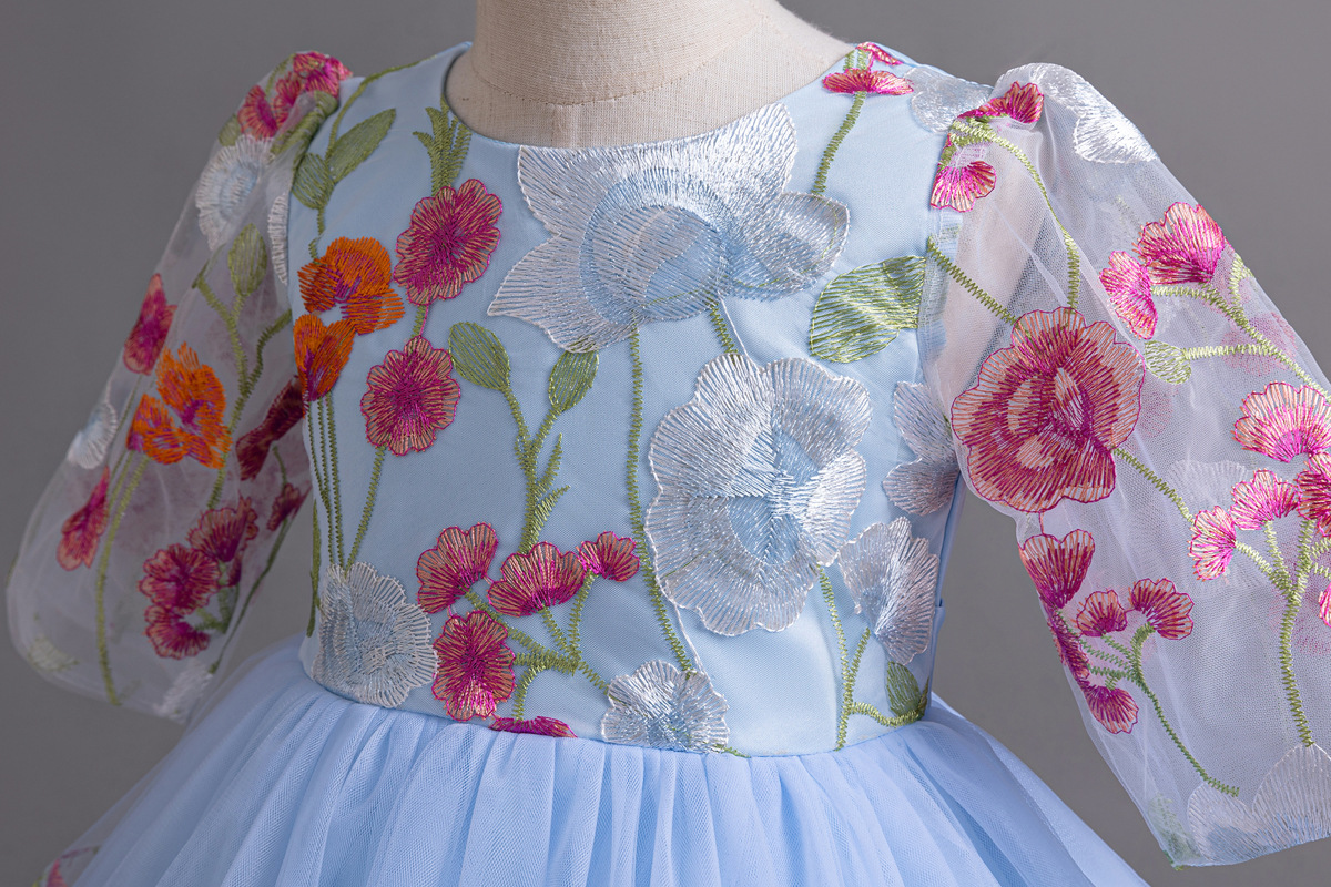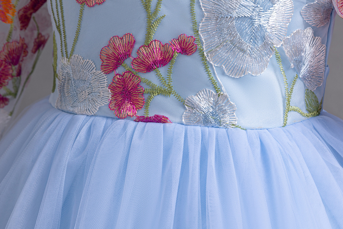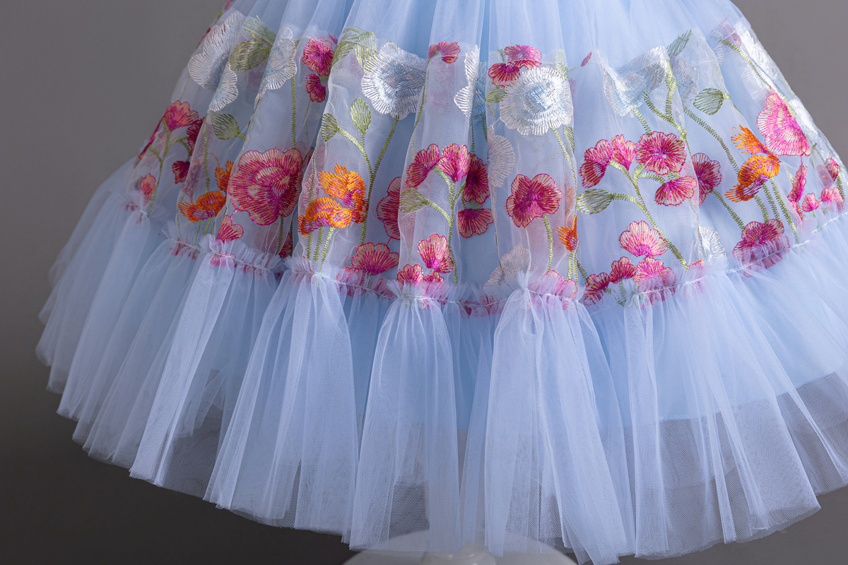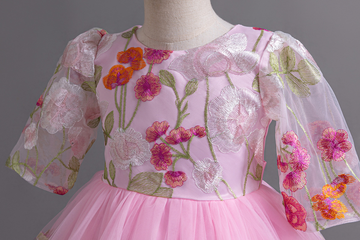 Floral Embroidered Tulle Children's Party Dress