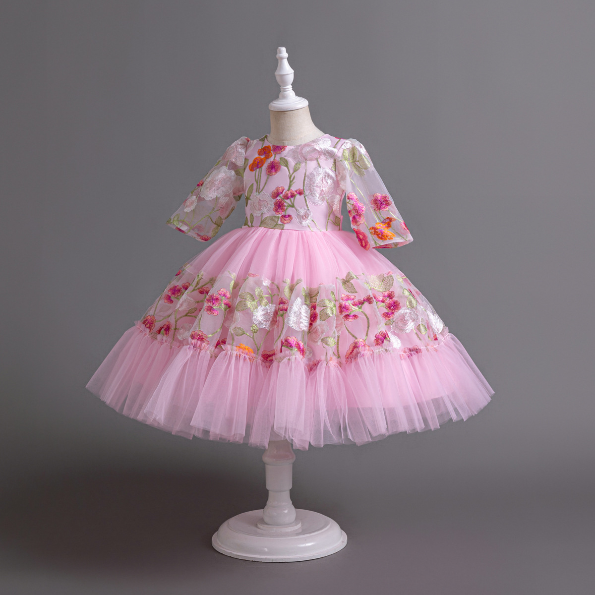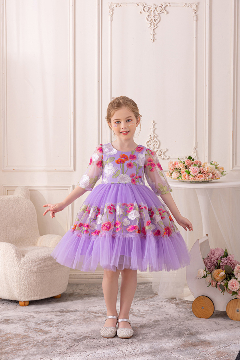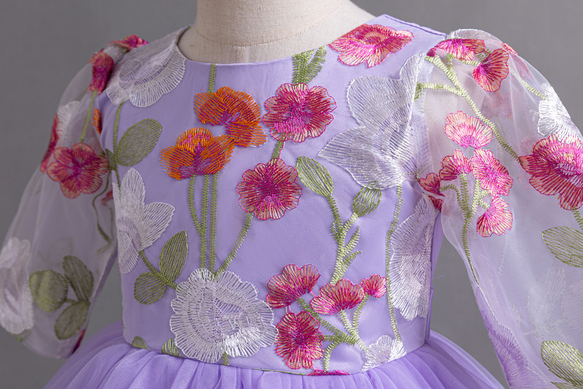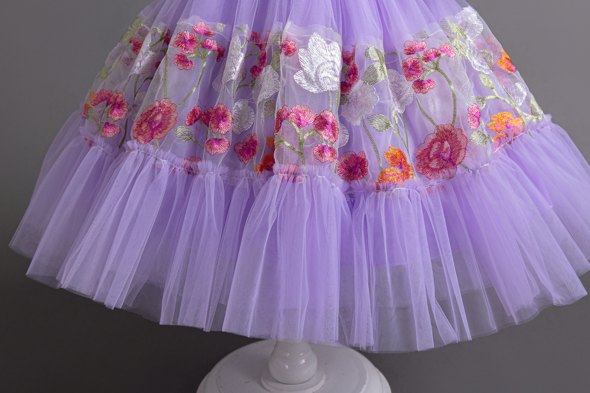 Floral Embroidered Tulle Children's Party Dress