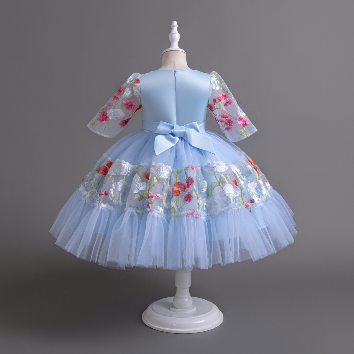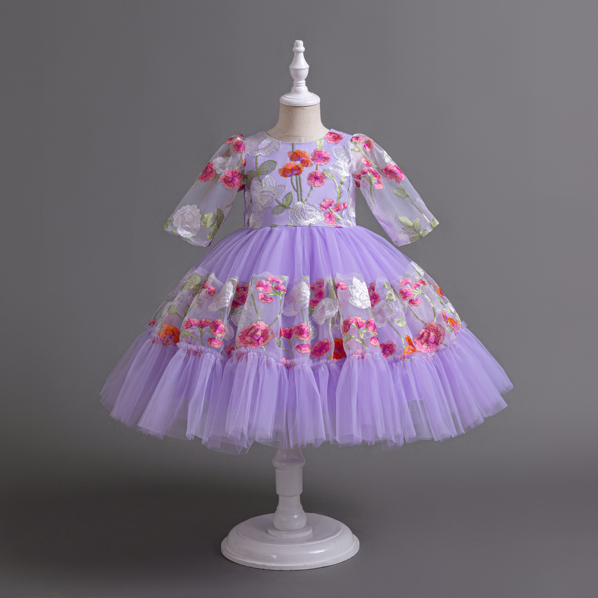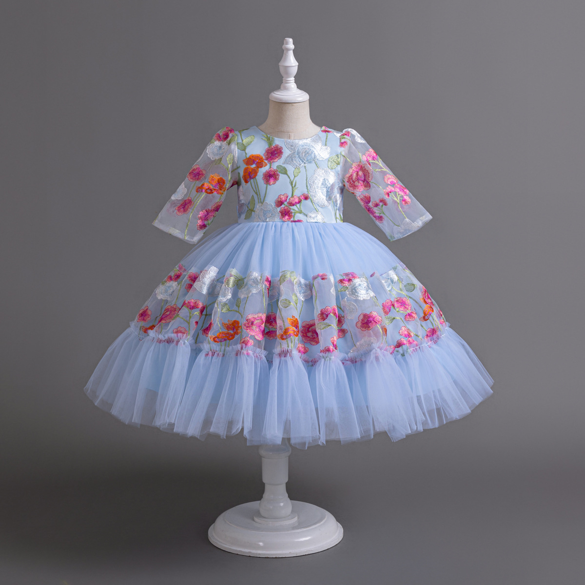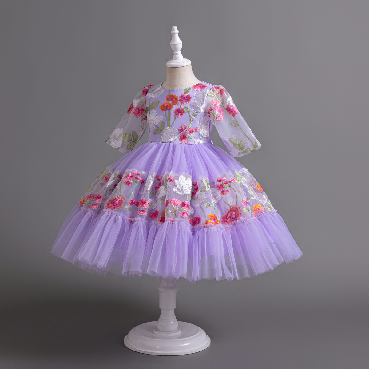 Floral Embroidered Tulle Children's Party Dress