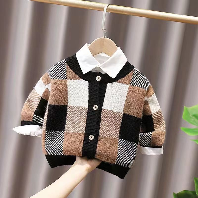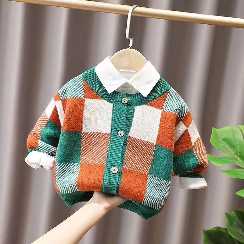 ✅Model: Men's Children's Knitted Checkered Golinha Jacket