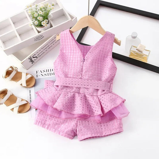 Vestido infantil con volantes y brillantes diamantes de imitación