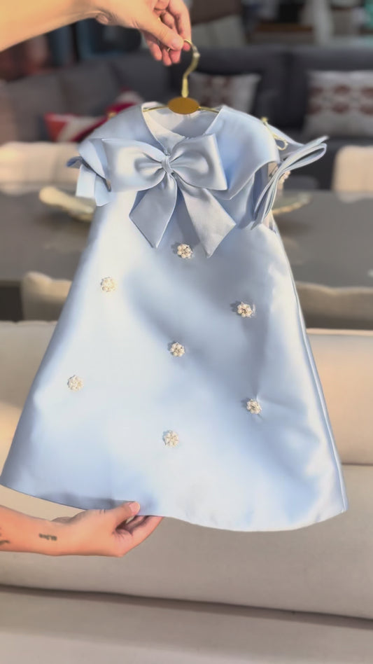 Vestido de fiesta infantil con lazos y espalda trenzada