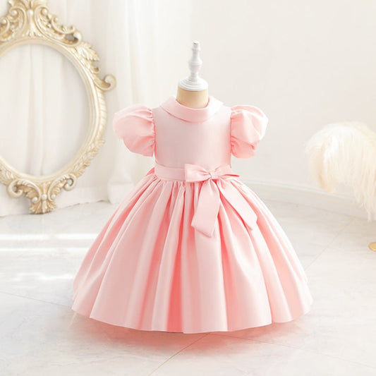 Vestido de fiesta infantil con lazo y perlas