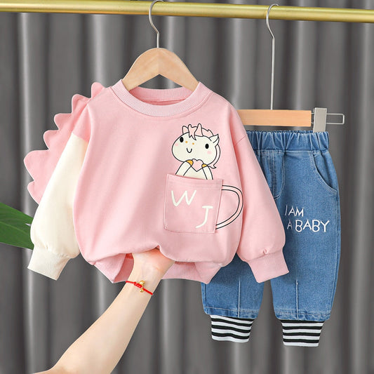 Conjunto de ropa para bebé, nuevo jersey estampado de manga larga y pantalones, 2 piezas, ropa de primavera y otoño