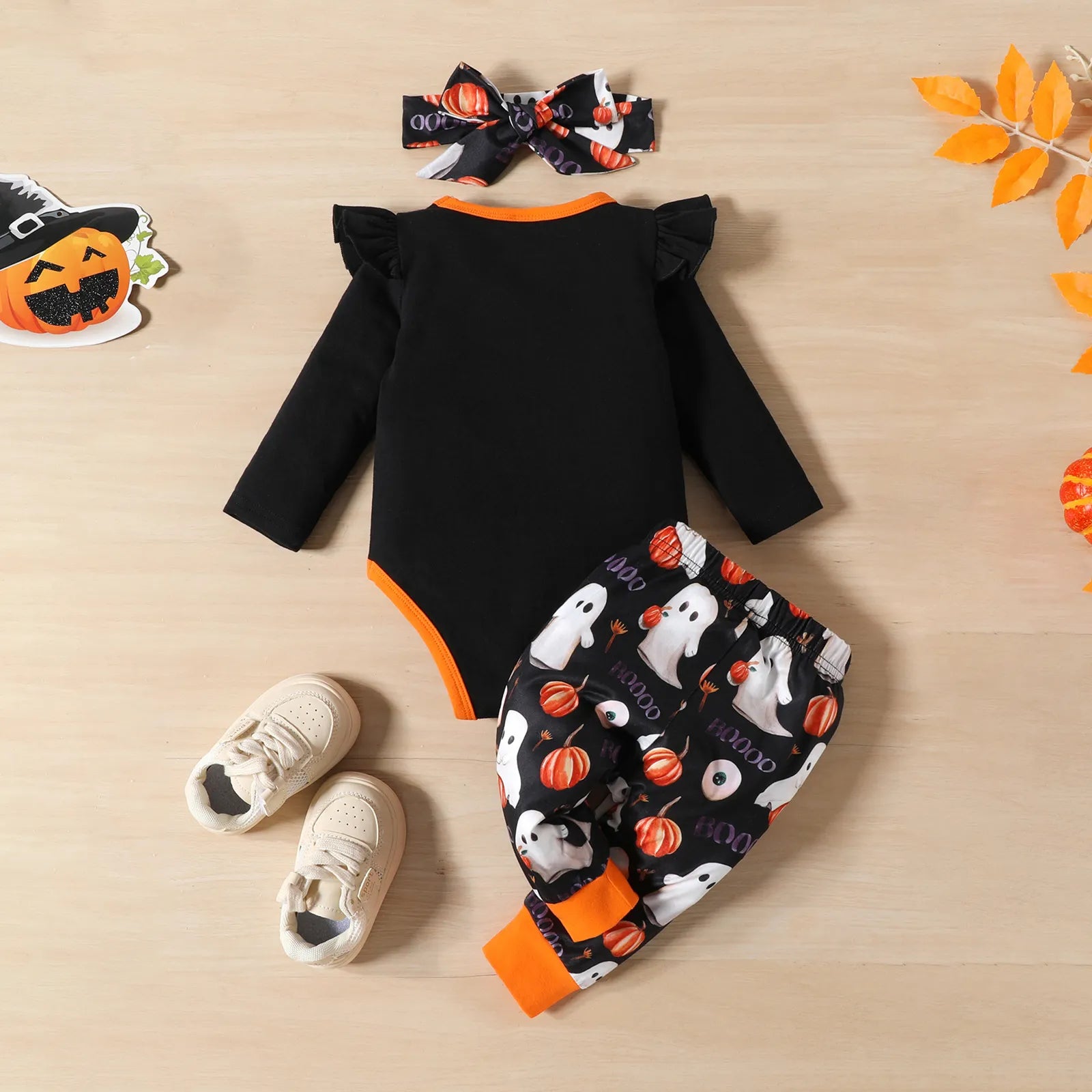 Conjunto de Halloween de algodón de manga larga con calabaza y fantasma