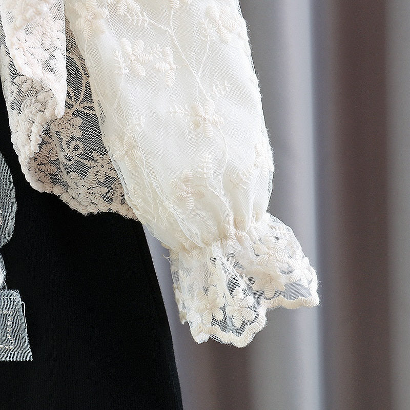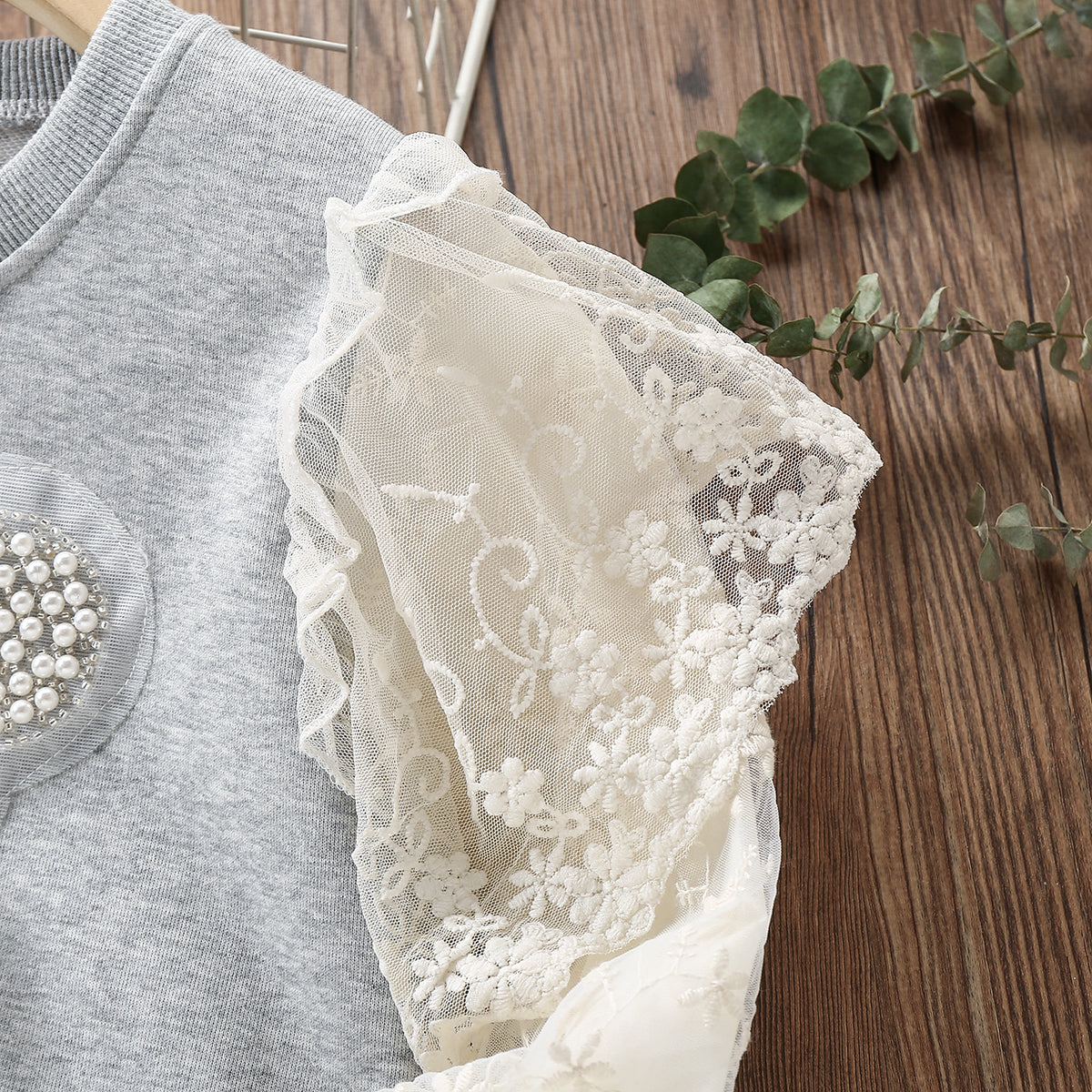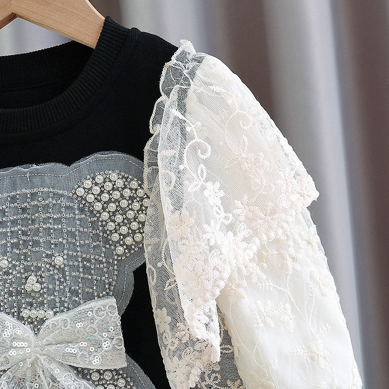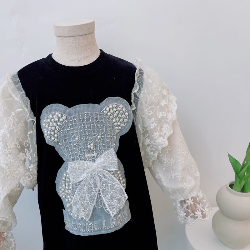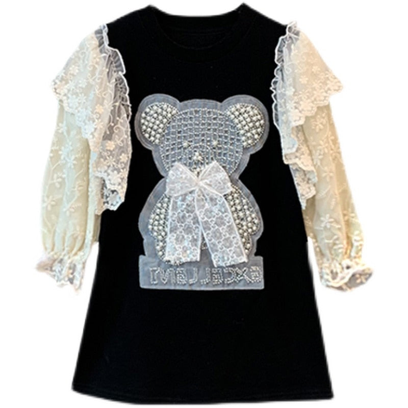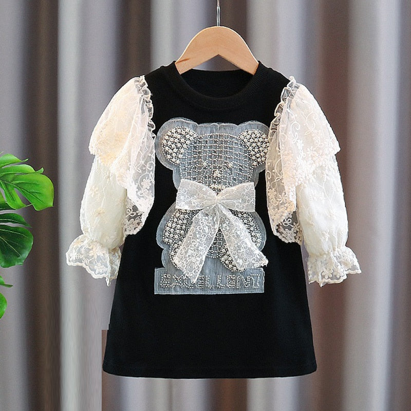 Vestido infantil con oso y encaje.