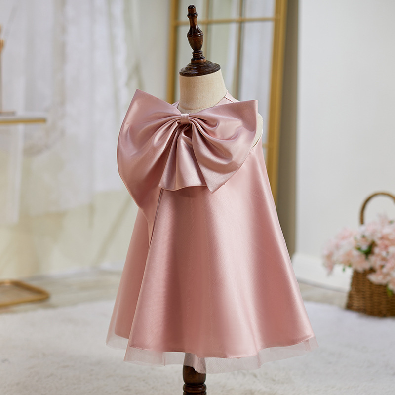 Vestido infantil con lazo rosa