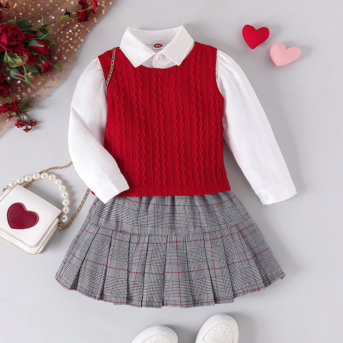Conjunto de 3 piezas para niña con chaleco y cuadros