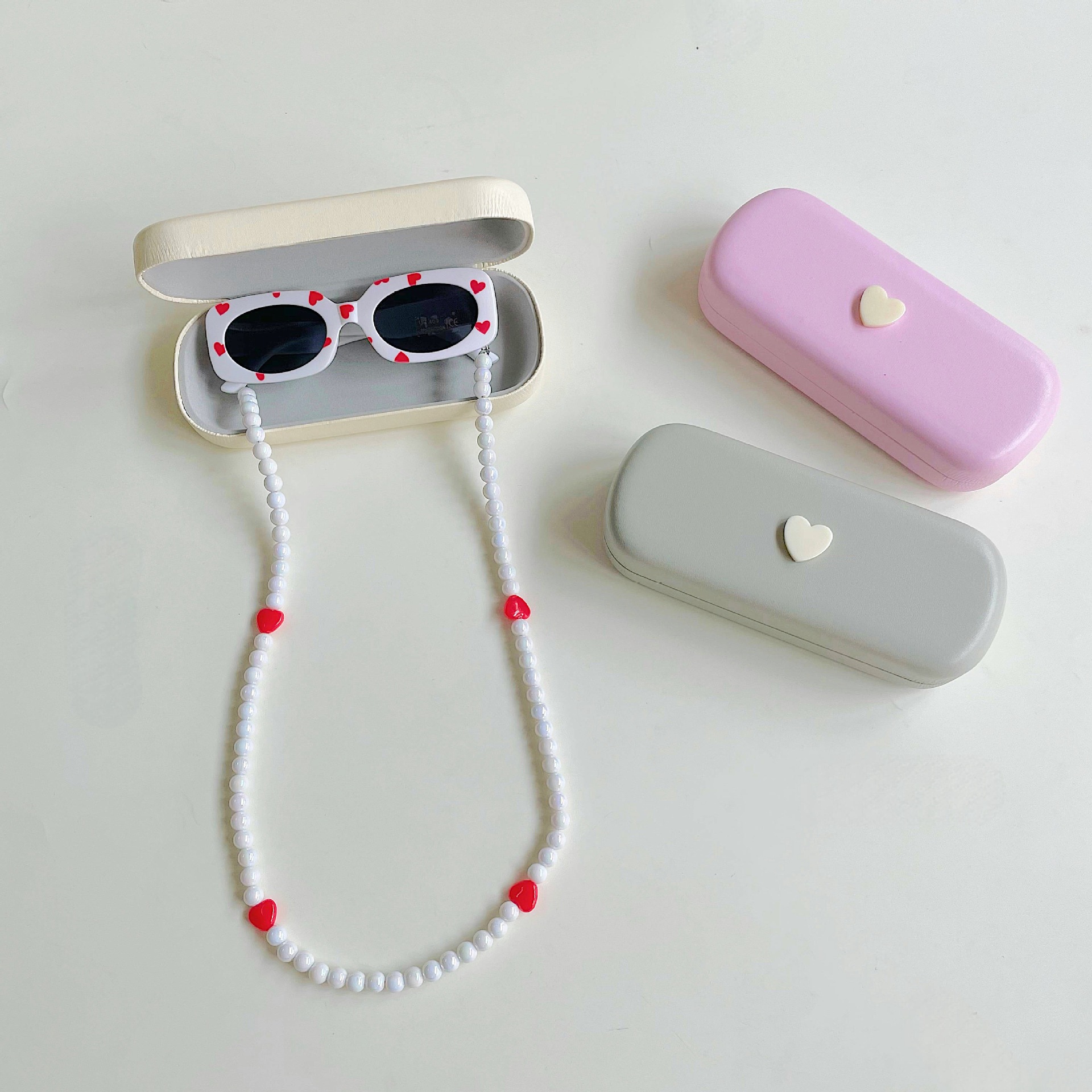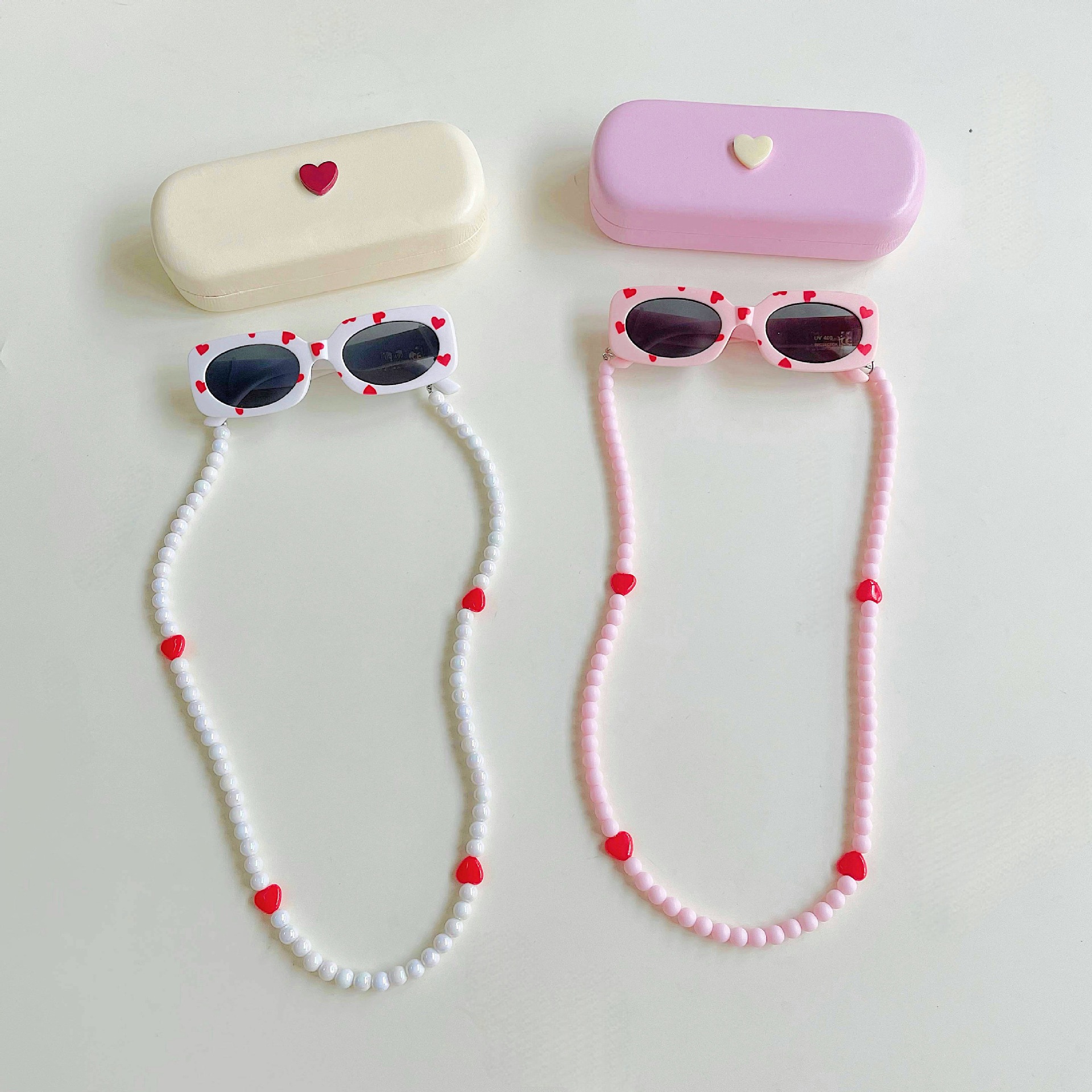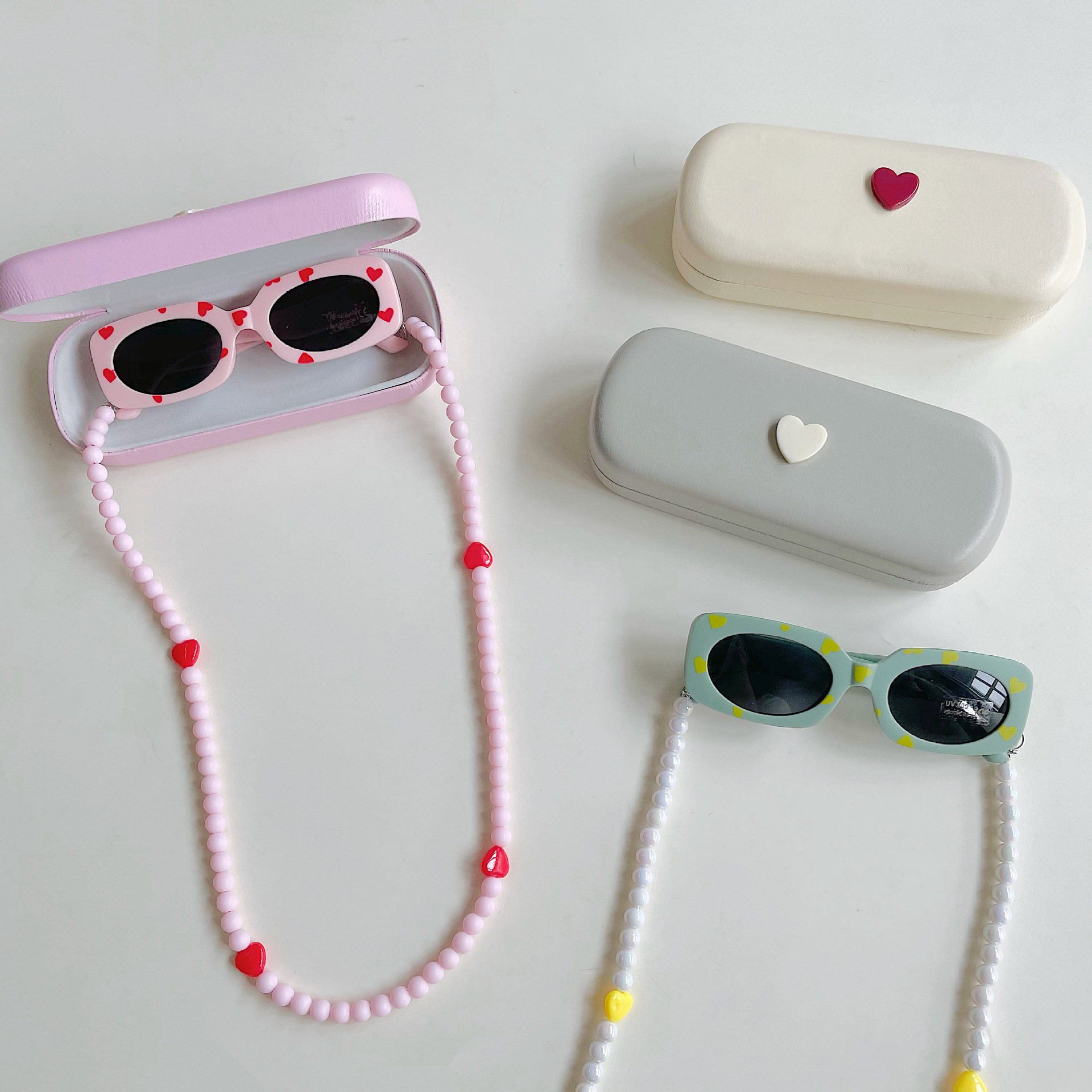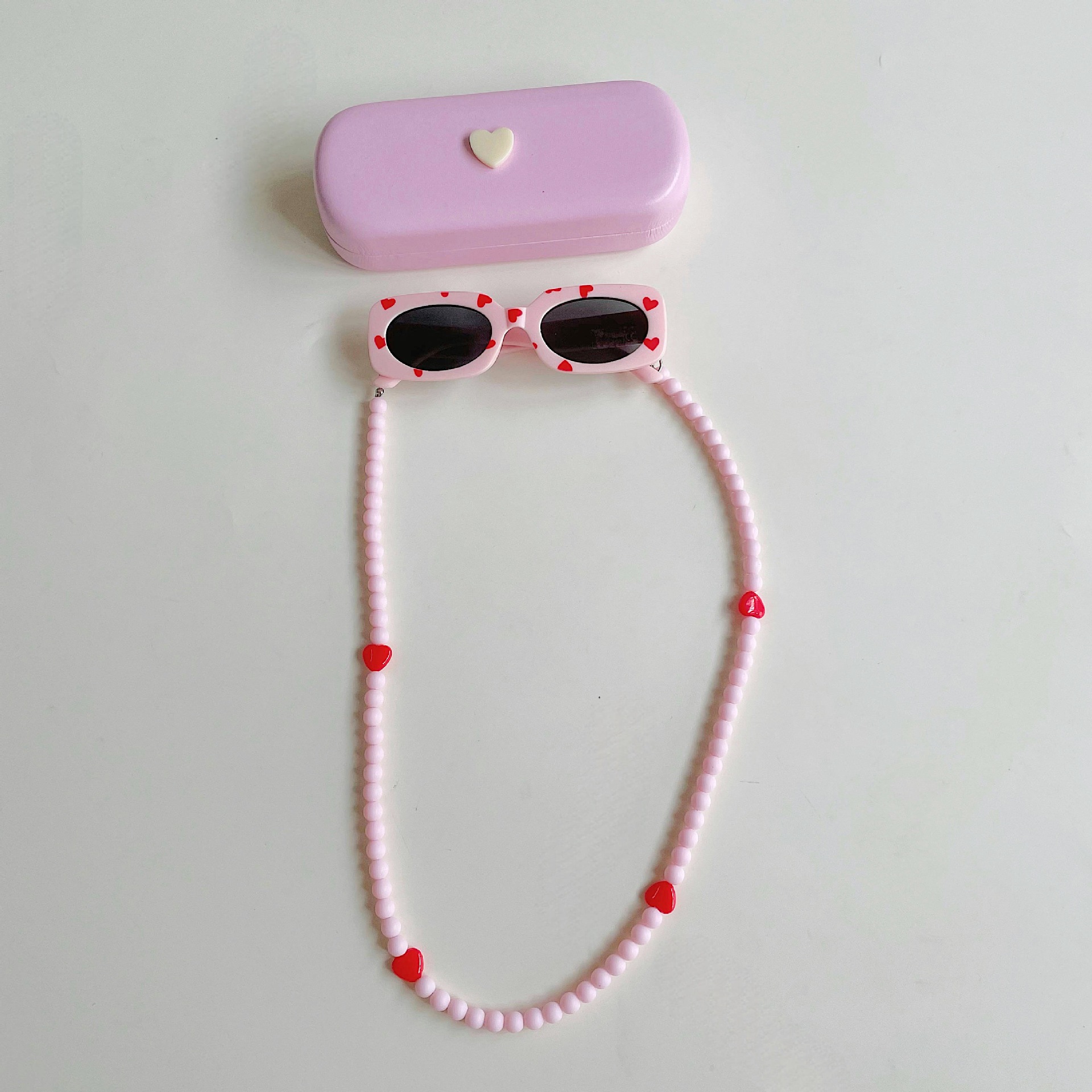 ✅ Modelo: Caja de almacenamiento + gafas de sol infantiles + cadena de gafas con cuentas.