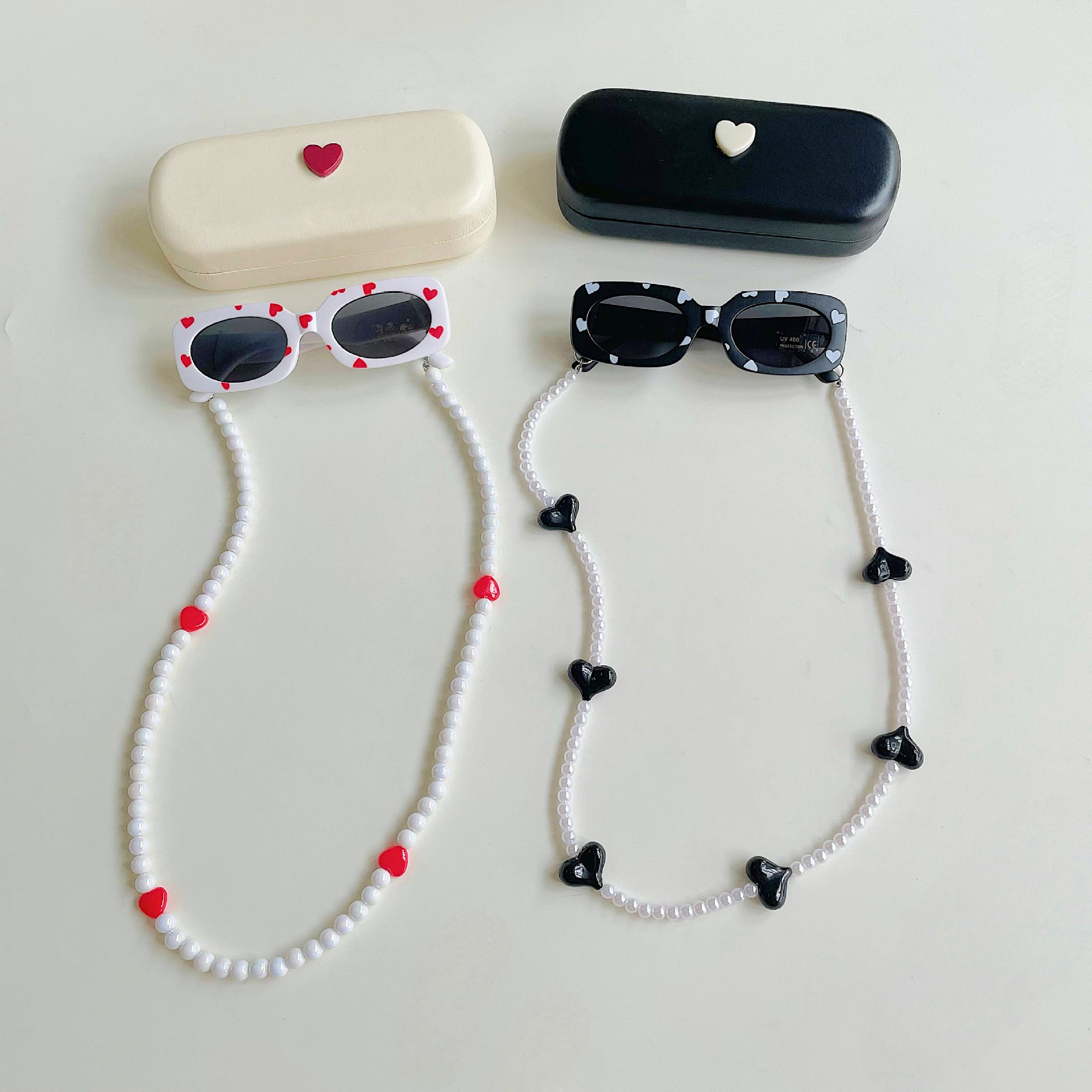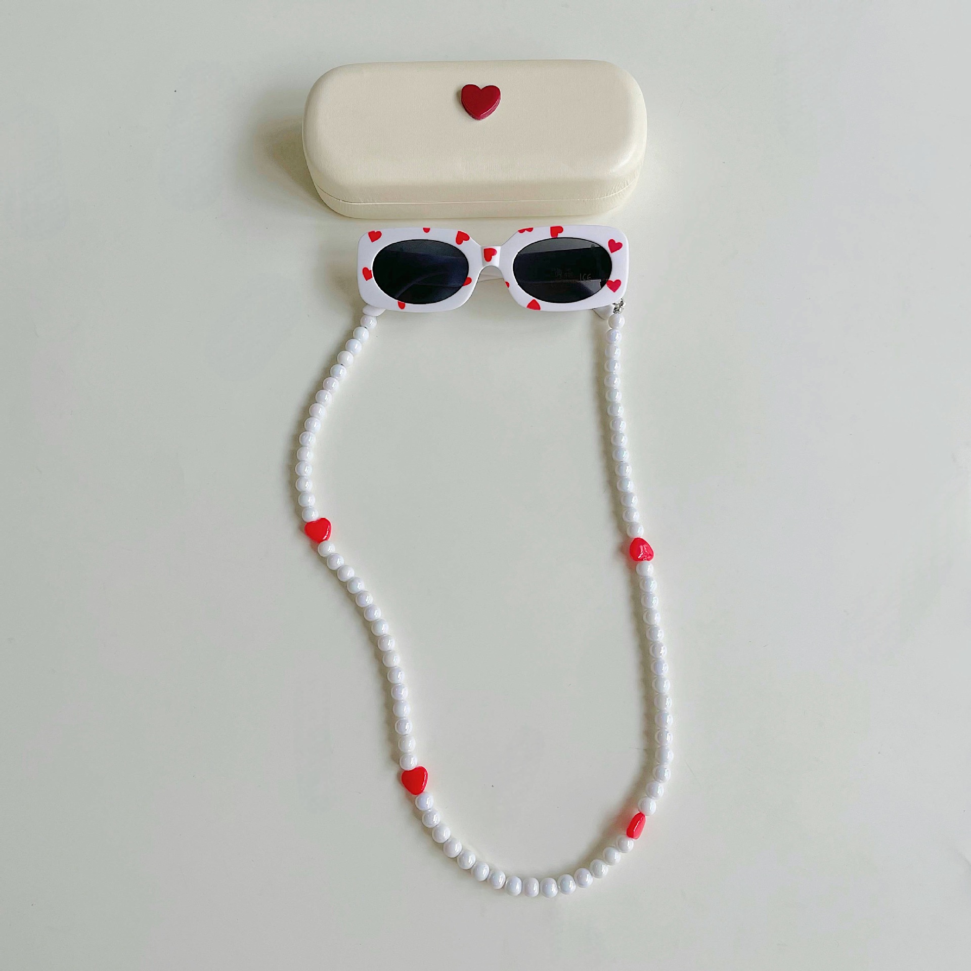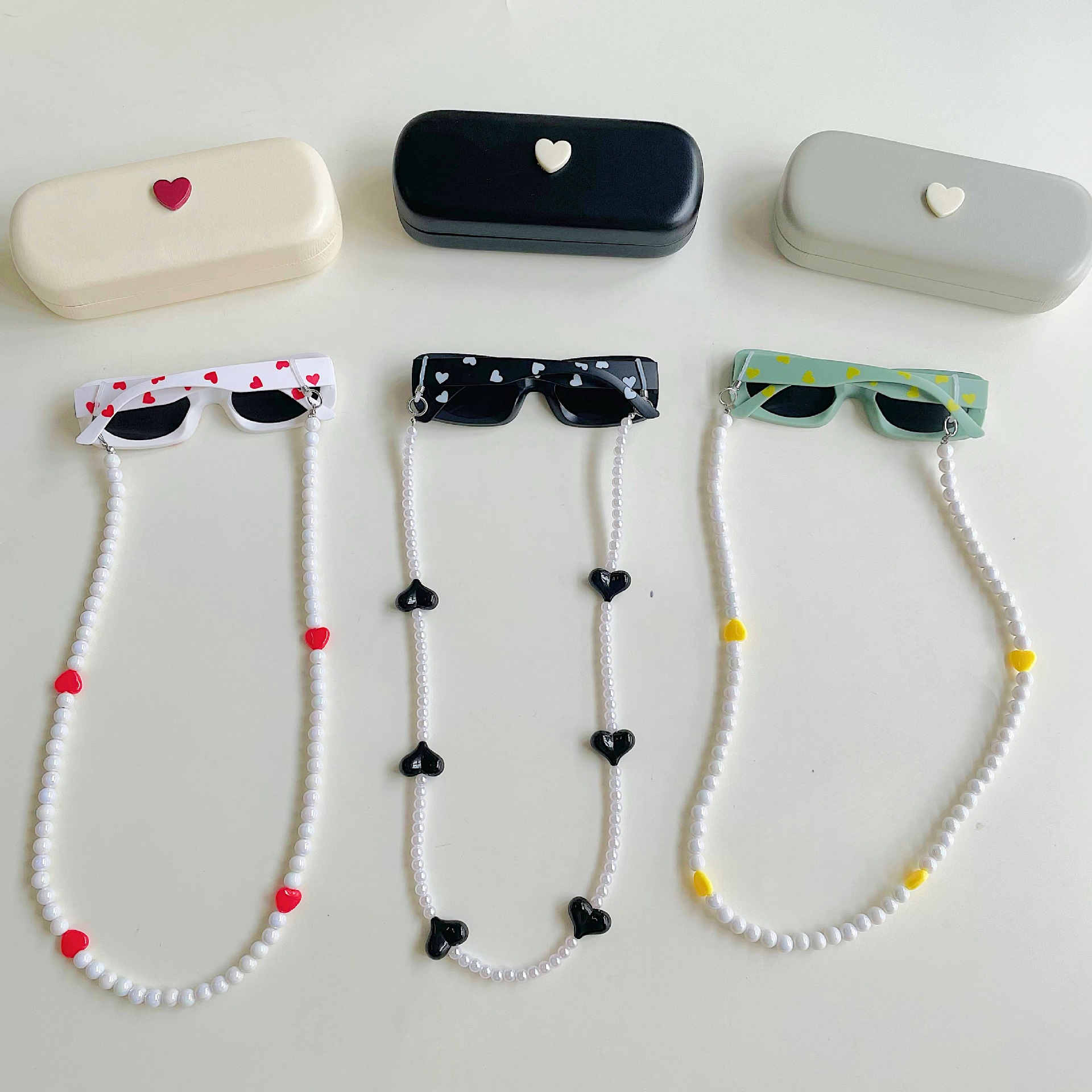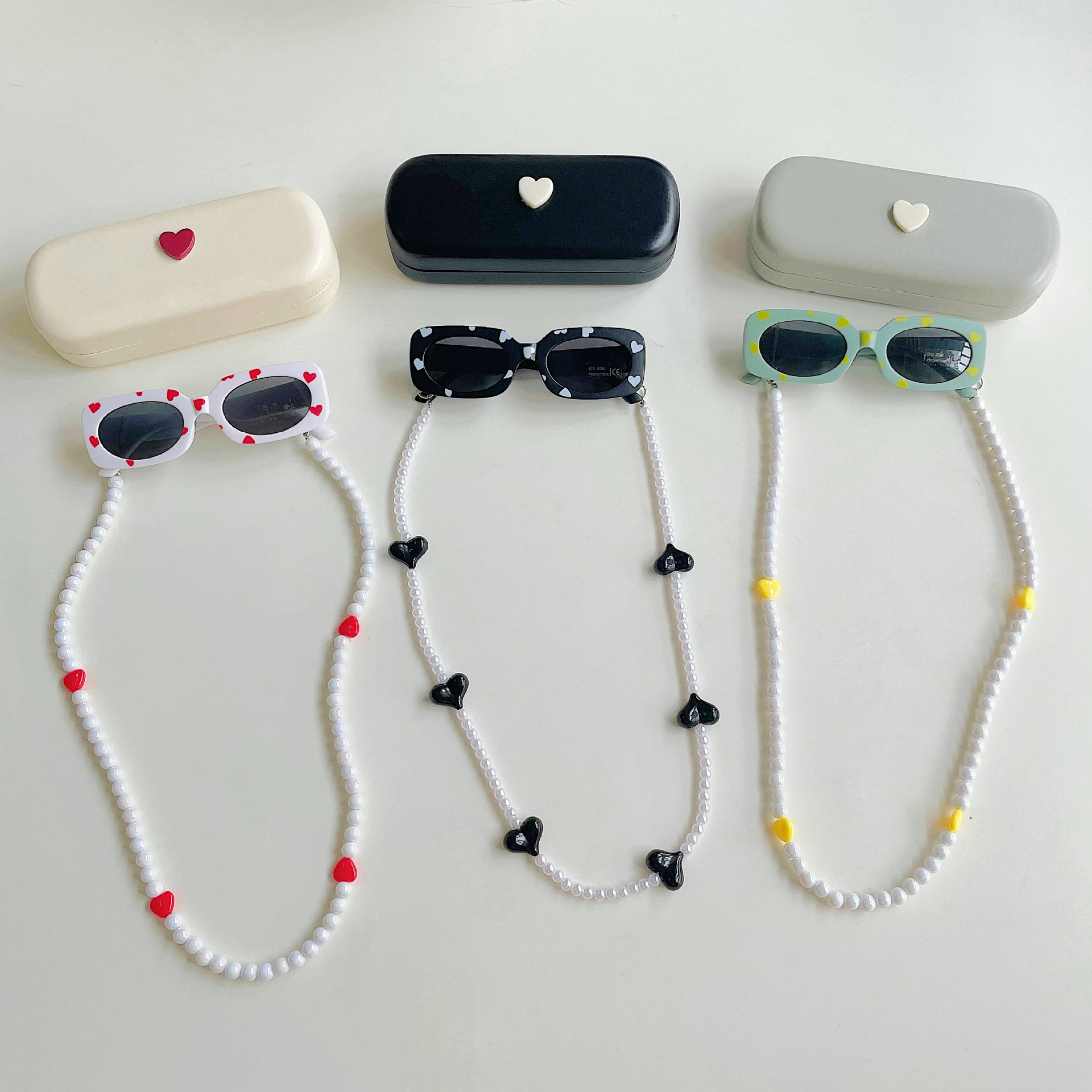 ✅ Modelo: Caja de almacenamiento + gafas de sol infantiles + cadena de gafas con cuentas.