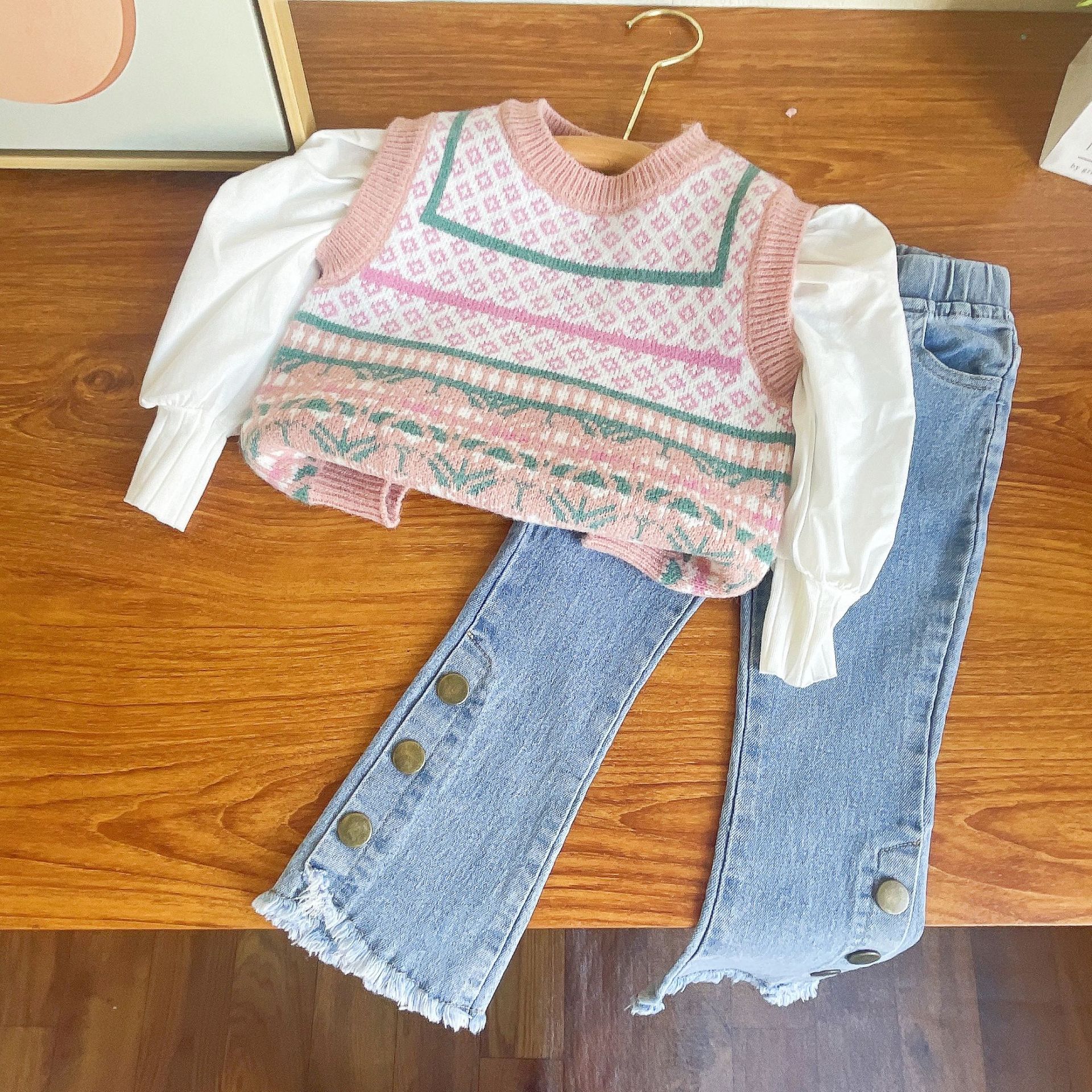 Conjunto de 3 piezas de suéter y jeans para mujer