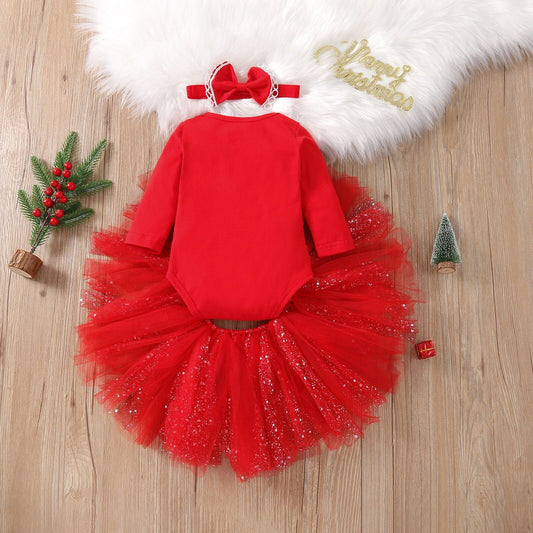 Pelele de manga larga para bebé + falda + cinta para el pelo