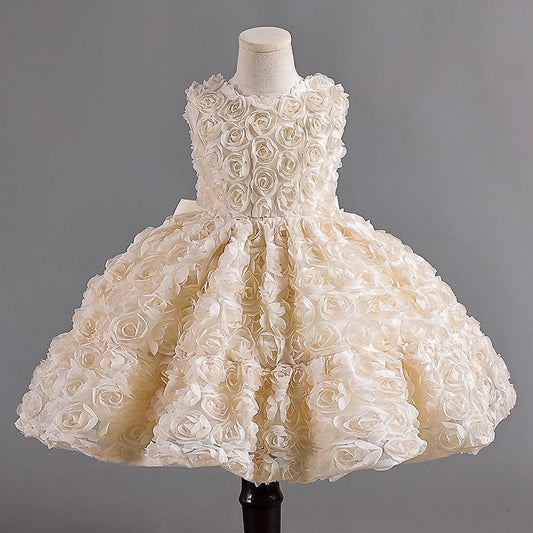 Vestido de fiesta infantil con tul abullonado y pedrería