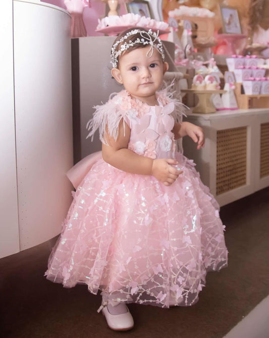 Vestido de Fiesta Infantil Mariposas y Plumas Lentejuelas