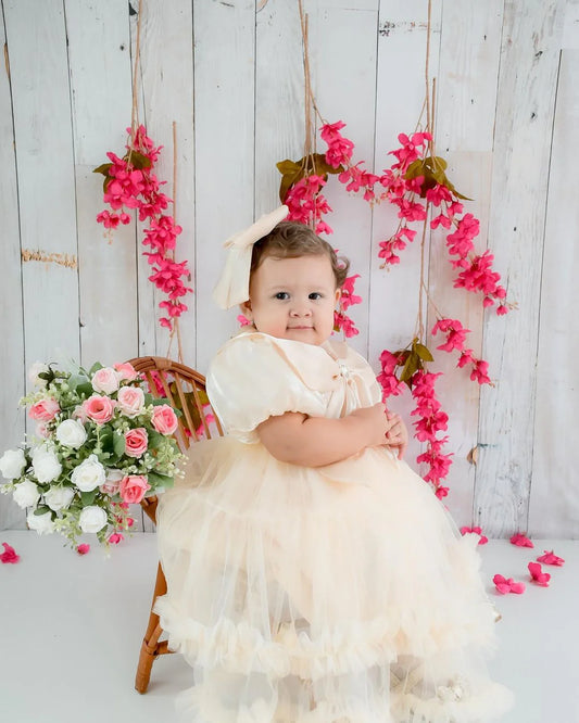 Vestido de fiesta infantil con cintas y perlas