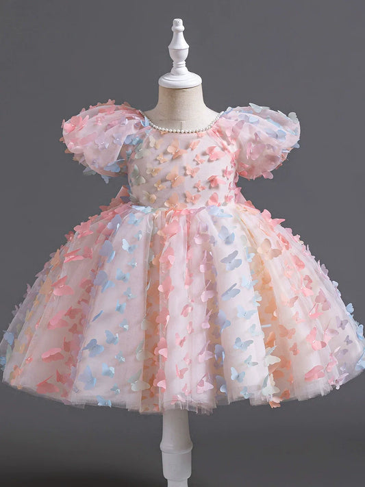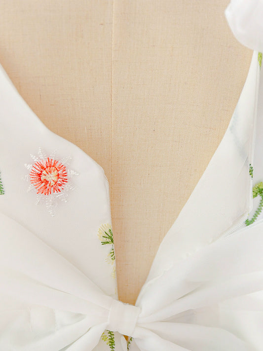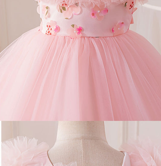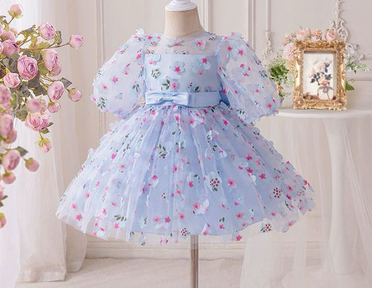 Vestido de fiesta infantil con lazo de flores pequeñas