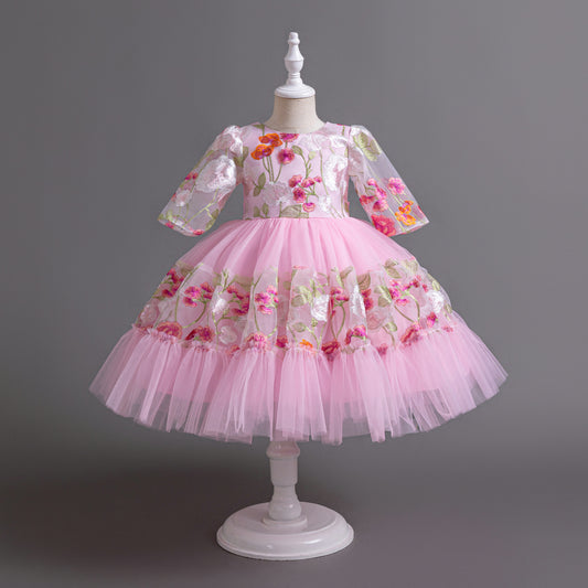 Vestido de fiesta infantil rosa con flores
