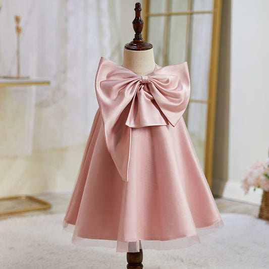 Vestido infantil con lazo rosa