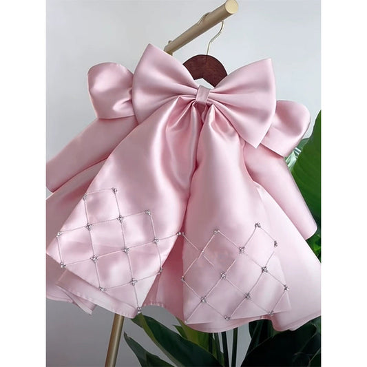 Vestido de fiesta infantil con lazo y perlas