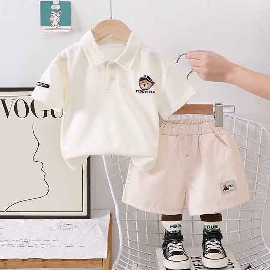 Boys' Polo Shirt Set with Teddy Bear Design