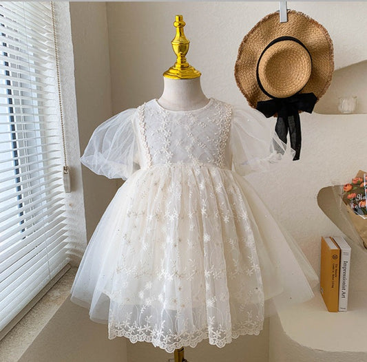 Vestido infantil con tul de encaje + diadema