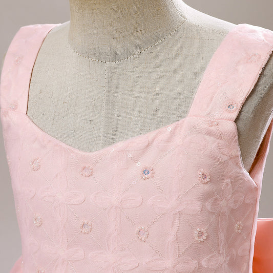 Vestido de fiesta de tul con lentejuelas y lazo