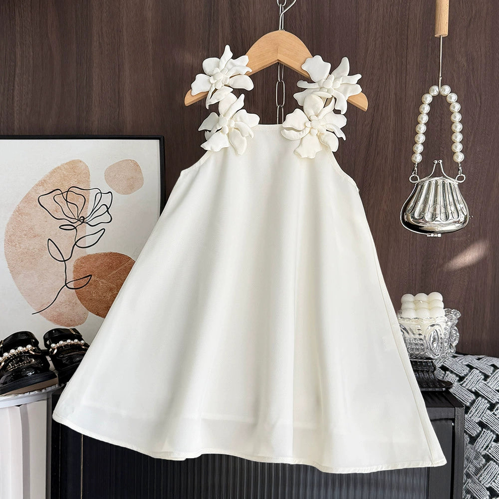 Children's Dress with Thin Straps and Flowers