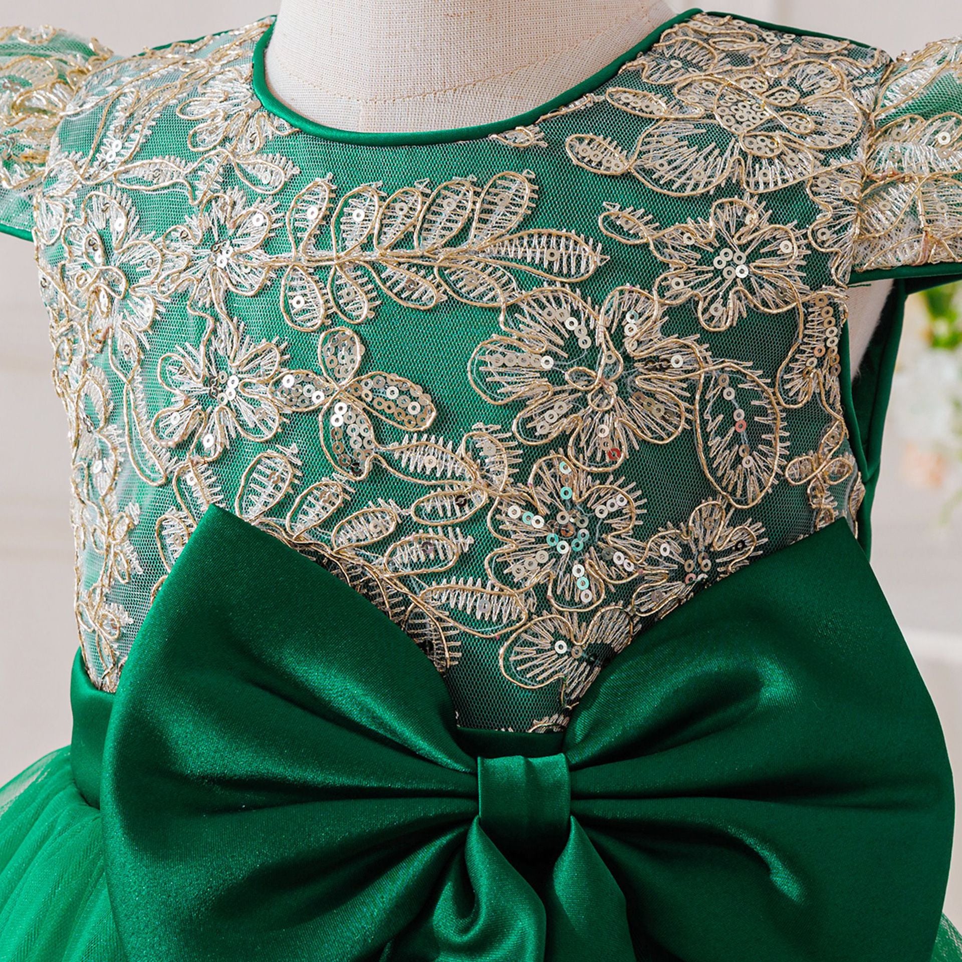 Children's Party Dress with Flowers and Bow