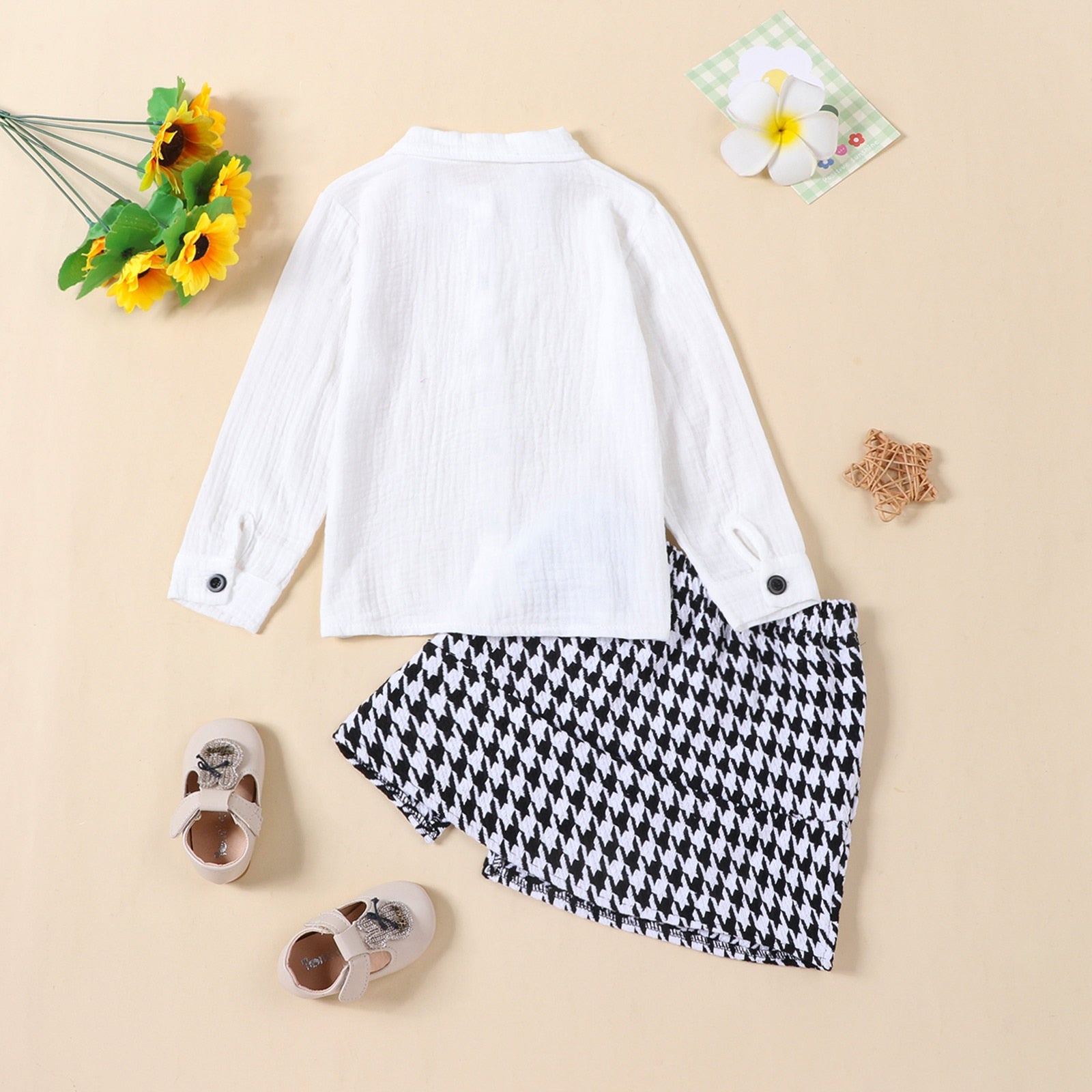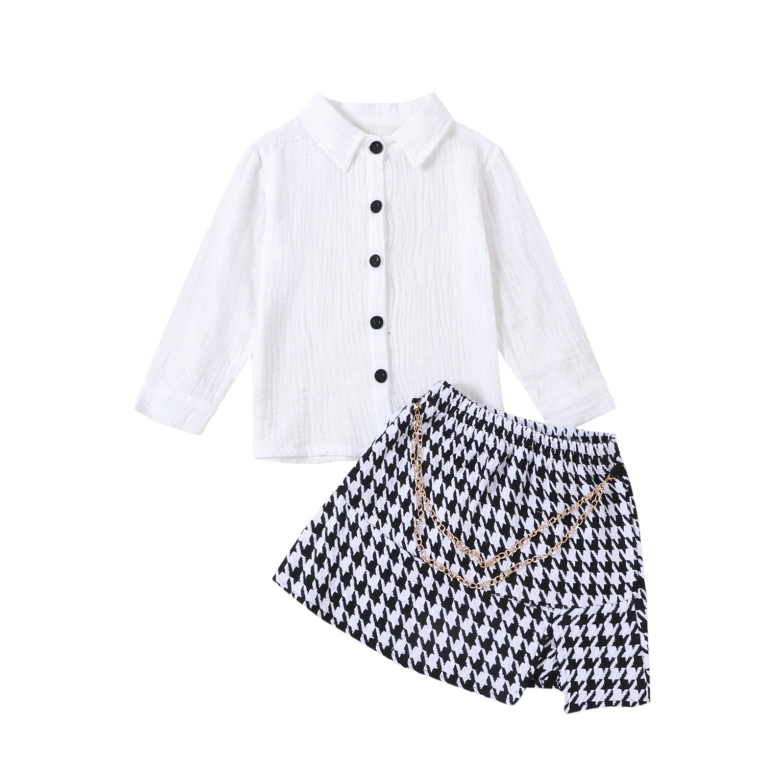 Conjunto infantil con camisa y falda blancas