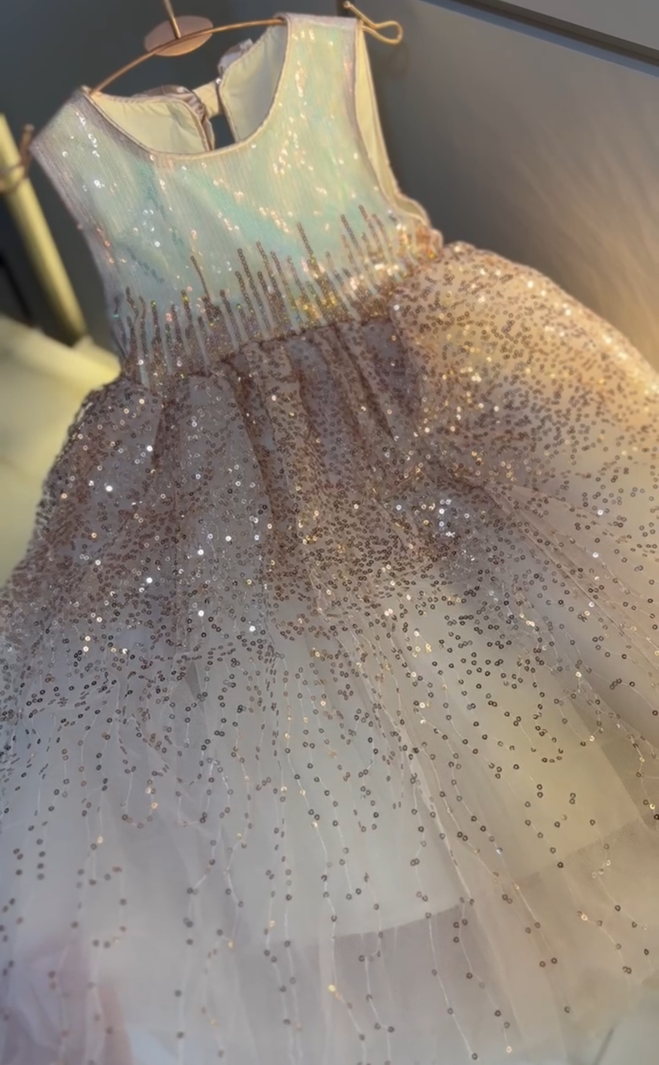 Vestido de princesa brillante para niña con lazo