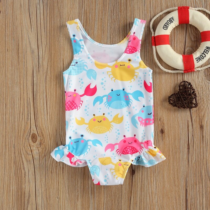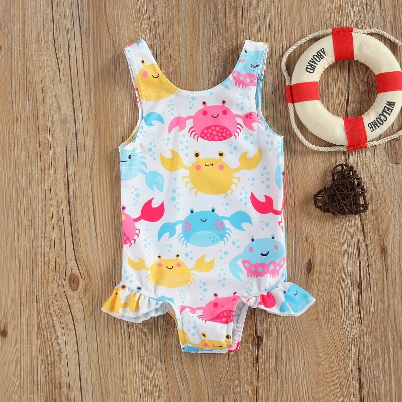 Este traje de baño de una pieza está especialmente diseñado para niñas, el diseño de estampado de cangrejo/dona puede satisfacer muy bien las preferencias de las niñas, perfecto para vacaciones de verano o viajes.