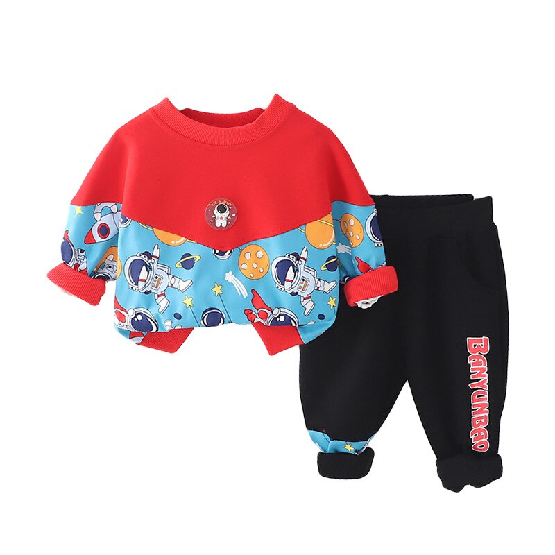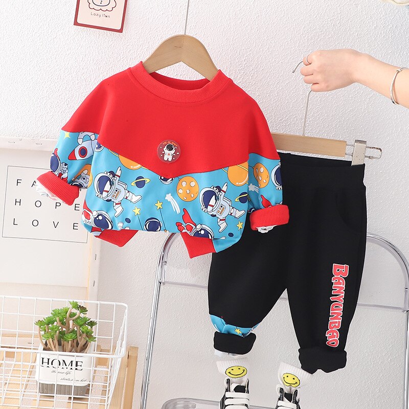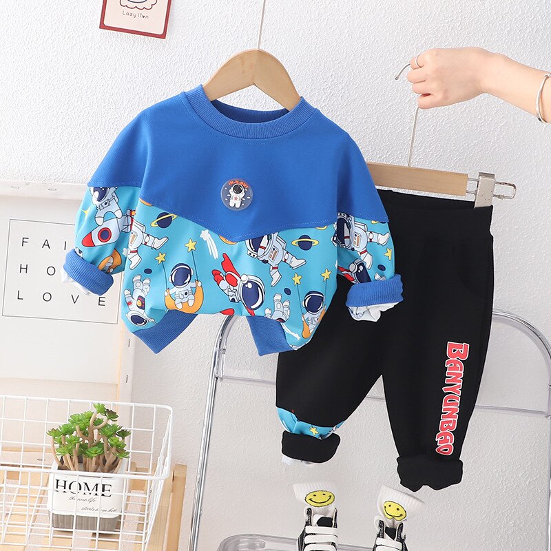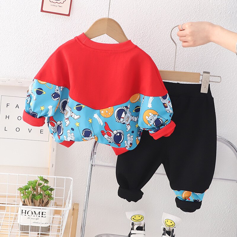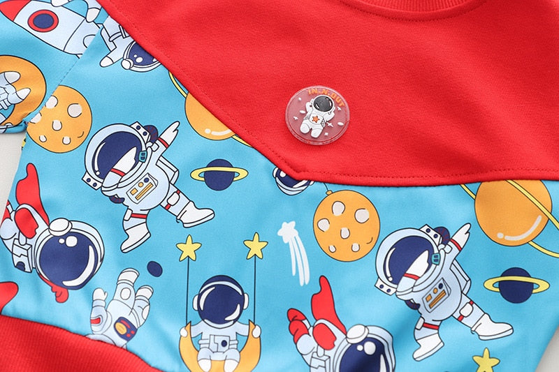 2PCS Clothes Set Printed Space Astronaut Sweatshirt Sweatpants