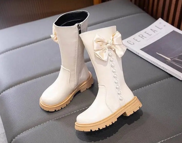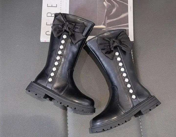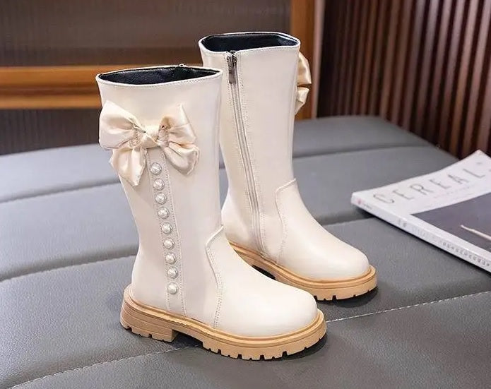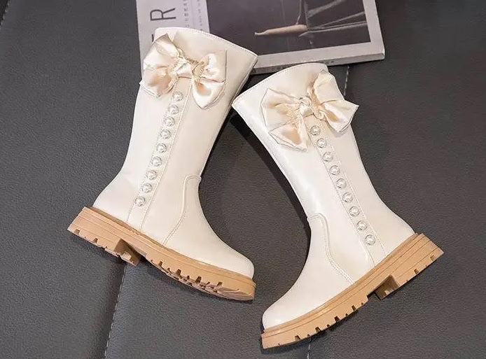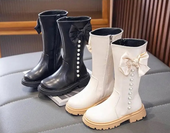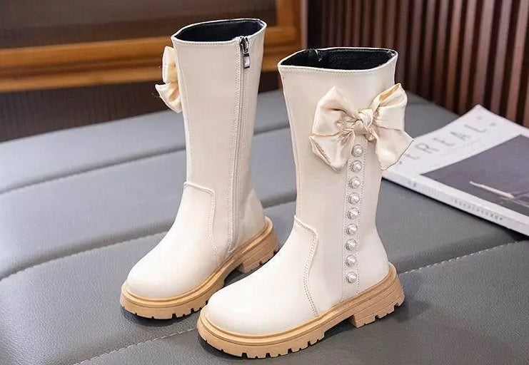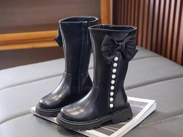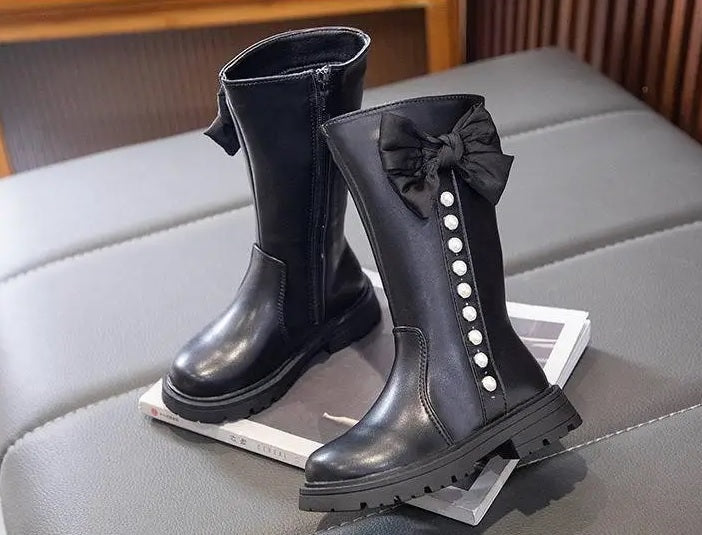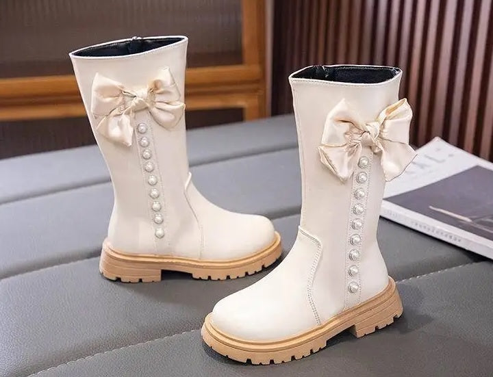Children's Ankle Boots With Bow And Pearls