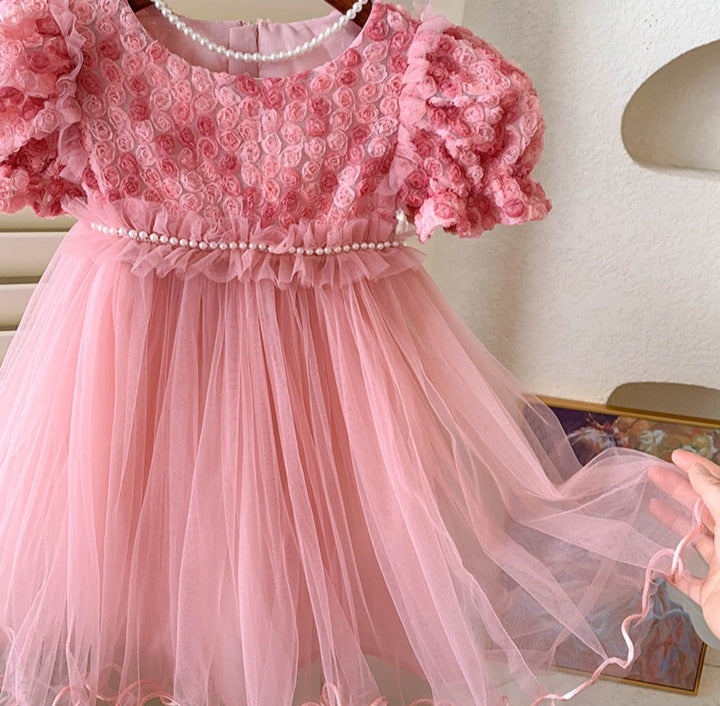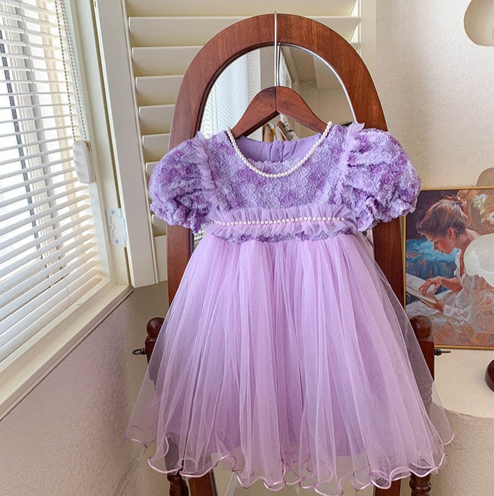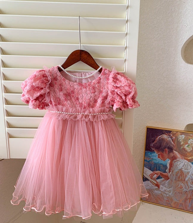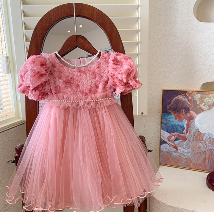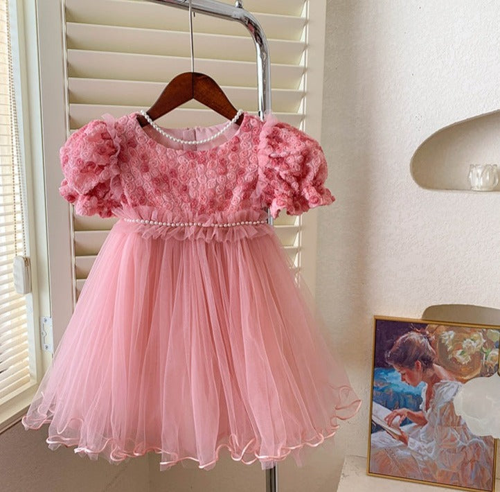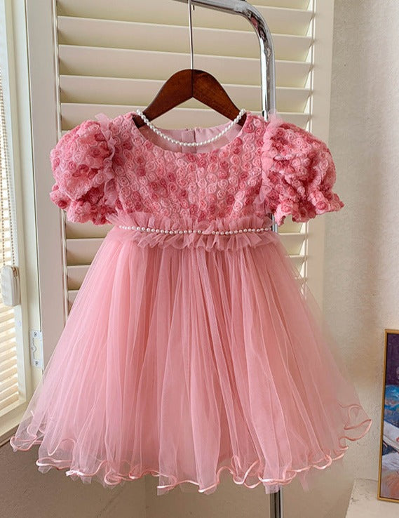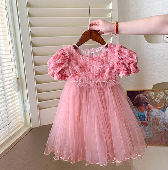 Children's Dress Tulle Pearls Flowers
