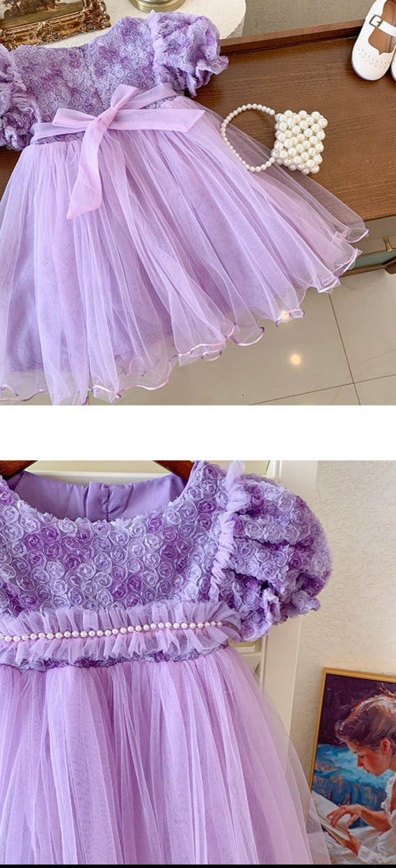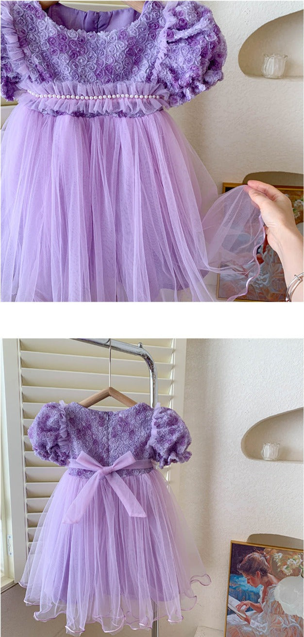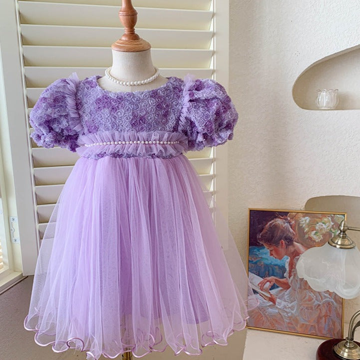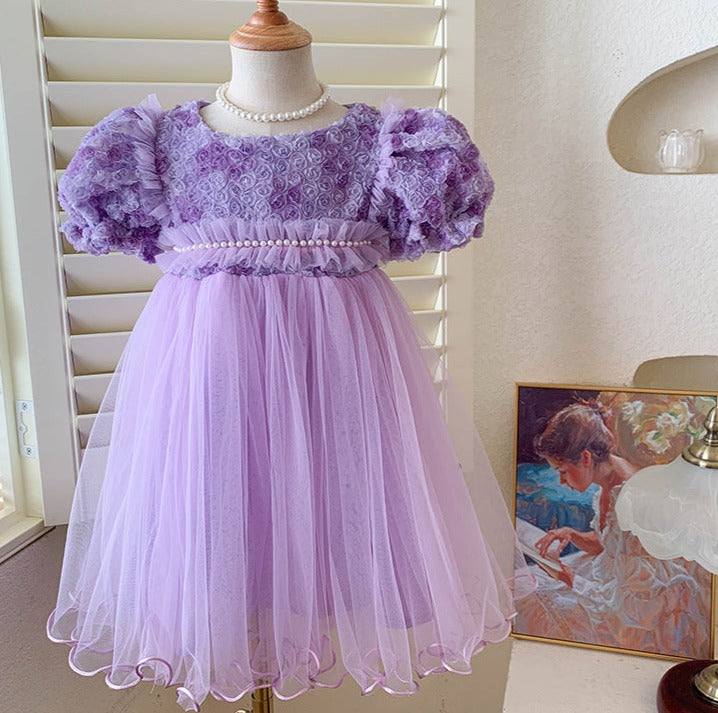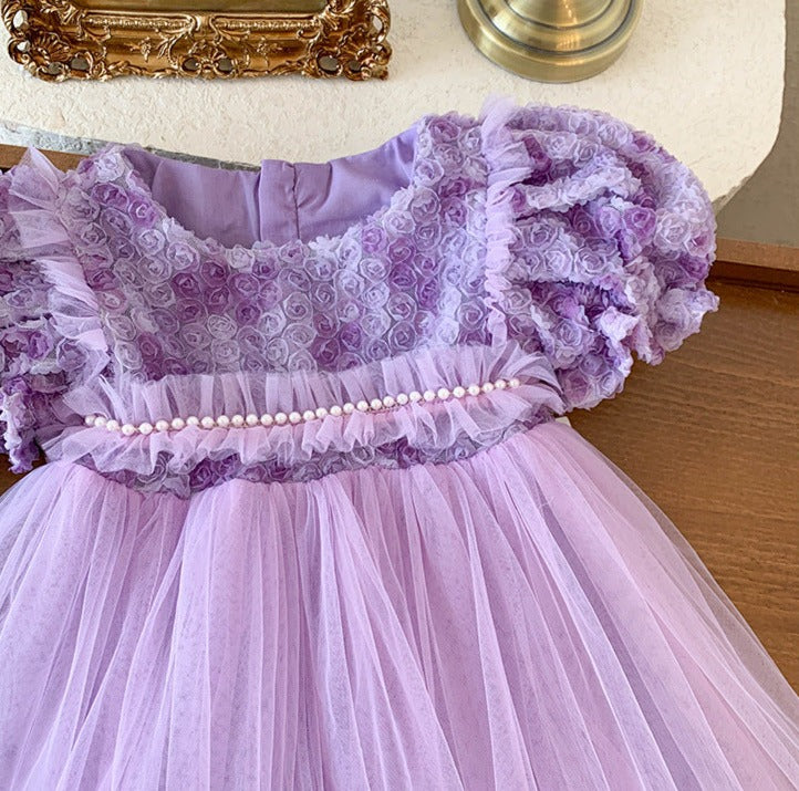 Children's Dress Tulle Pearls Flowers