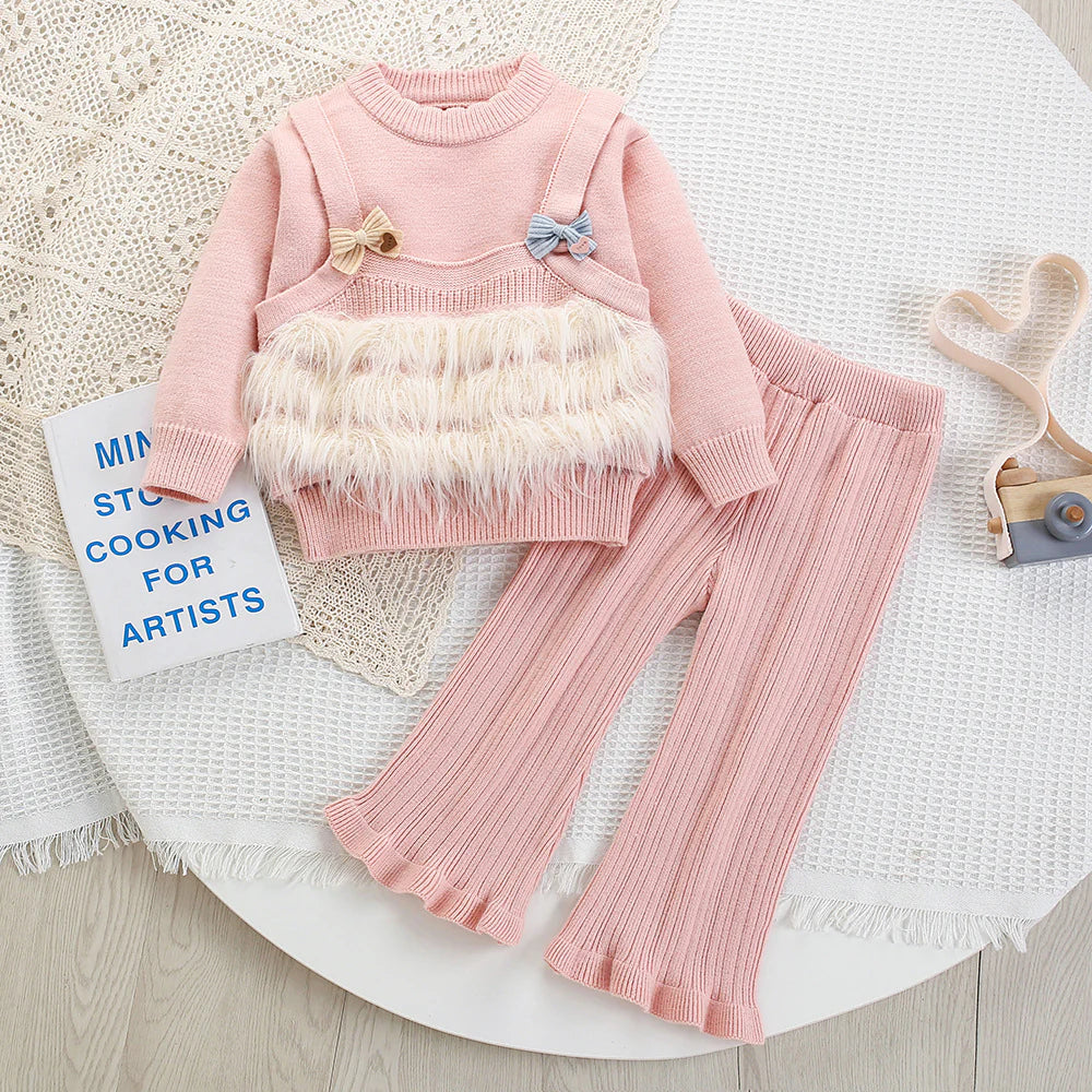 Children's Knit Set with Bow and Fur